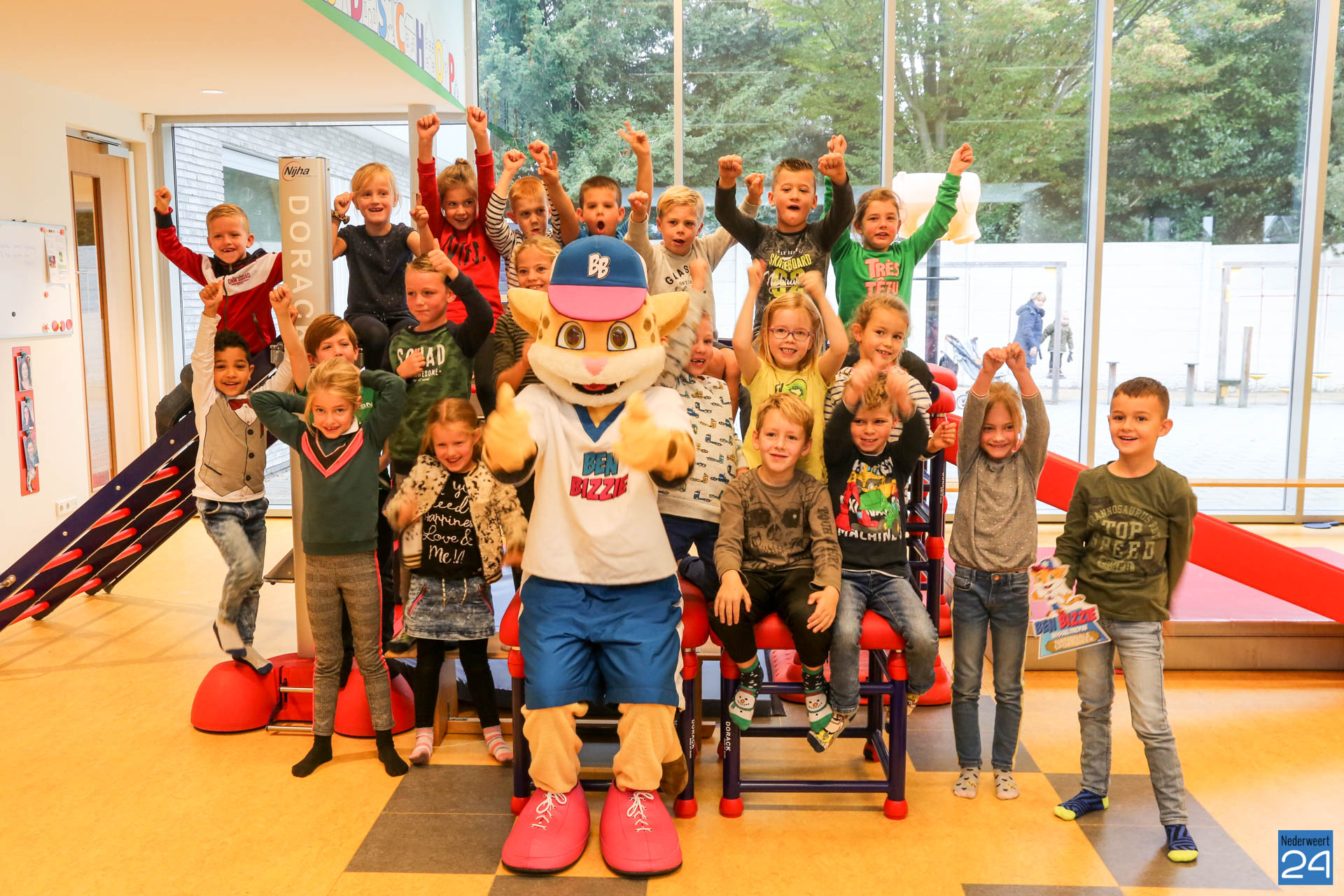Tijdens de Nationale Sportweek kreeg elke basisschool in Nederweert een beweegkalender van Ben Bizzie. Een kalender vol sportieve en gezonde opdrachten, zoals het maken van een beweegparcours en het organiseren van een gezonde lunch. “Zo maakten ze kans om de sportiefste klas van Nederweert te worden. Veel scholen deden mee. Maar de absolute winnaar is groep 3/4 van basisschool Budschop”, zo vertelt beweegcoach Merle enthousiast. Zij kregen afgelopen donderdag wel heel bijzonder bezoek. Met de trofee onder zijn arm, liep Ben Bizzie het schoolplein van basisschool Budschop op. “Wat zijn ze daar goed Bizzie! Ze hebben de titel van sportiefste klas meer dan verdient”, aldus Ben. Natuurlijk liet hij het niet aan zich voorbij gaan om mee te doen met de pauzesport. “Het was een leuke sportieve ochtend!”