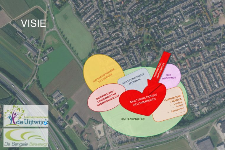 De visie op de gebiedsontwikkeling is gebaseerd op een aantal bouwstenen. Dan gaat het om sport, verkeersveiligheid, een centrale accommodatie / ontmoetingsplek voor diverse verenigingen, een leefbaarheidspark, (maatschappelijk) ondernemerschap en onderwijs. Er vond een verdiepingsslag plaats waarbij de bouwstenen zijn verwerkt tot een zestal scenario’s. Deze scenario’s variëren van ‘beheersmatig’ tot ‘investeren’ in de toekomst van de verenigingen en de gemeenschap”.