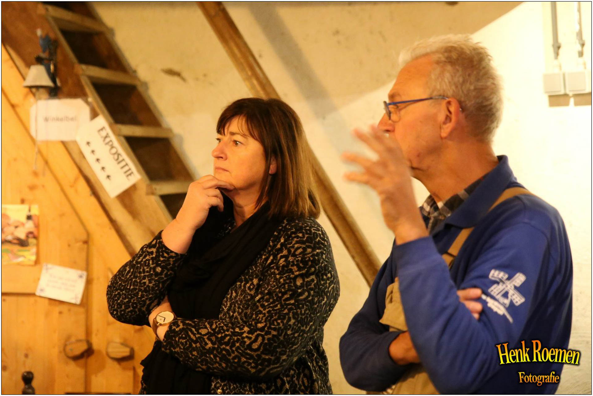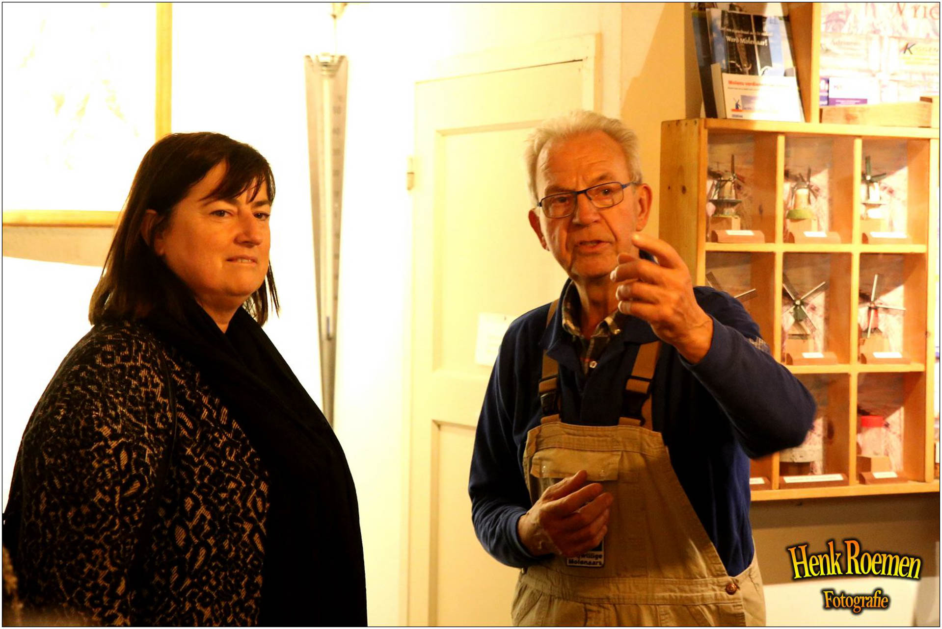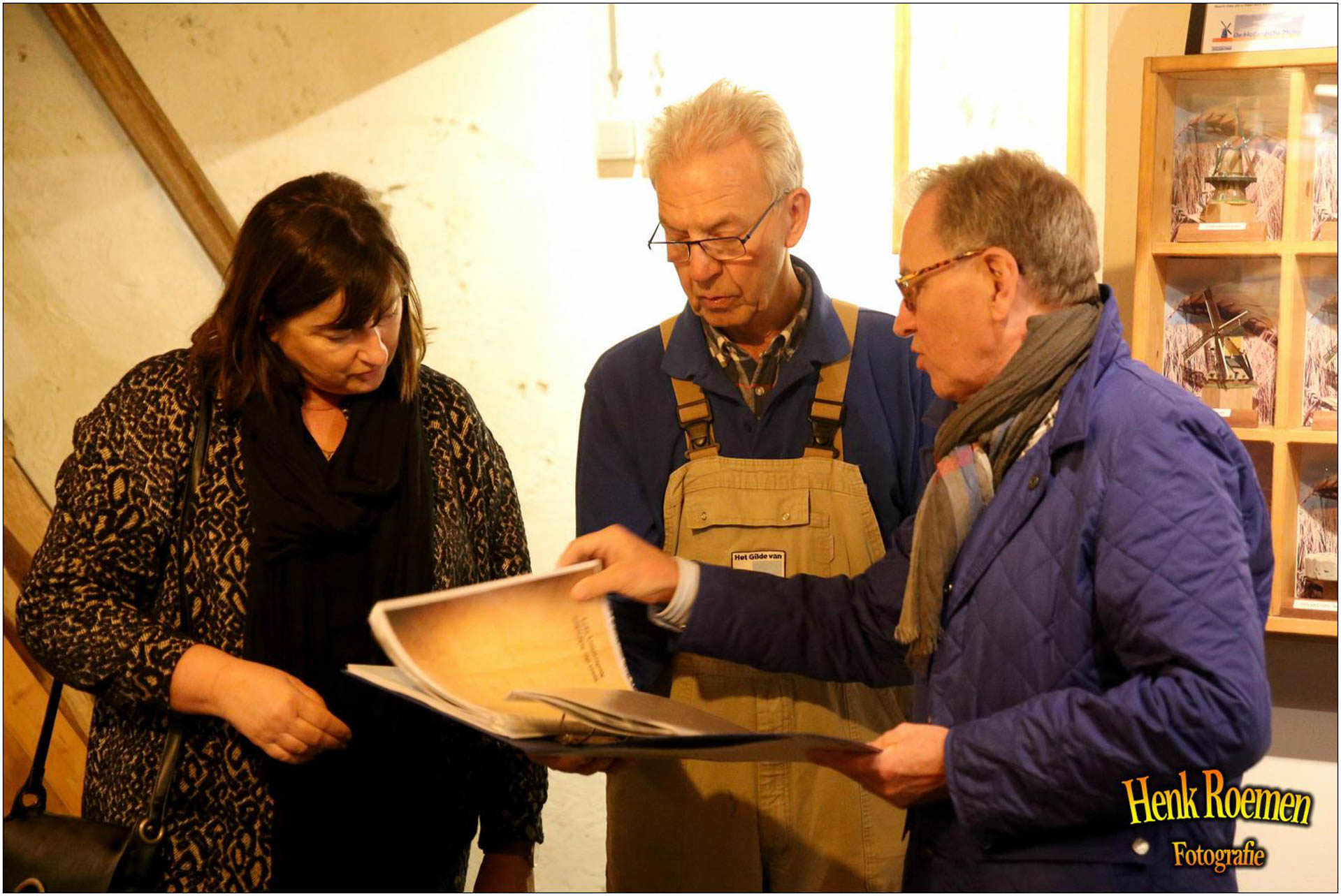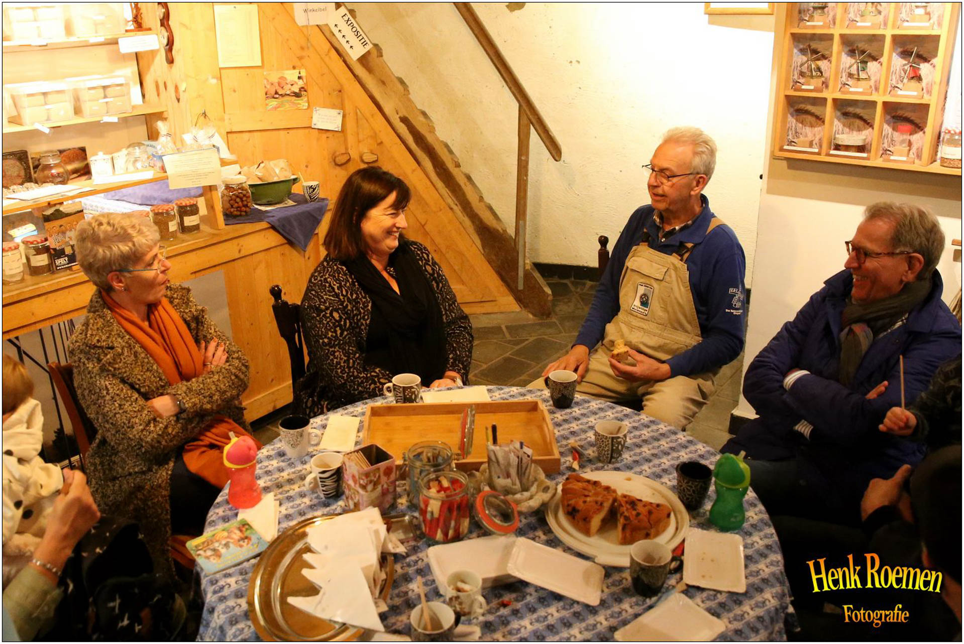 De molenaars en veel vrijwilligers waren bij dit bezoek aanwezig. Zij liet zich uitgebreid informeren over de geschiedenis van de molen, de werking en de onderhoudstoestand. Ook had ze veel belangstelling voor de molenwinkel waar veel zelf samengestelde broodmixen te koop zijn. Een nieuw verdienmodel voor de molen. Burgemeester Op de Laak liet zich op alle zolders van de molen uitvoerig informeren over de werking van de molen. Ook had ze veel interesse in de molenbiotoop en hoe deze in stand te houden.