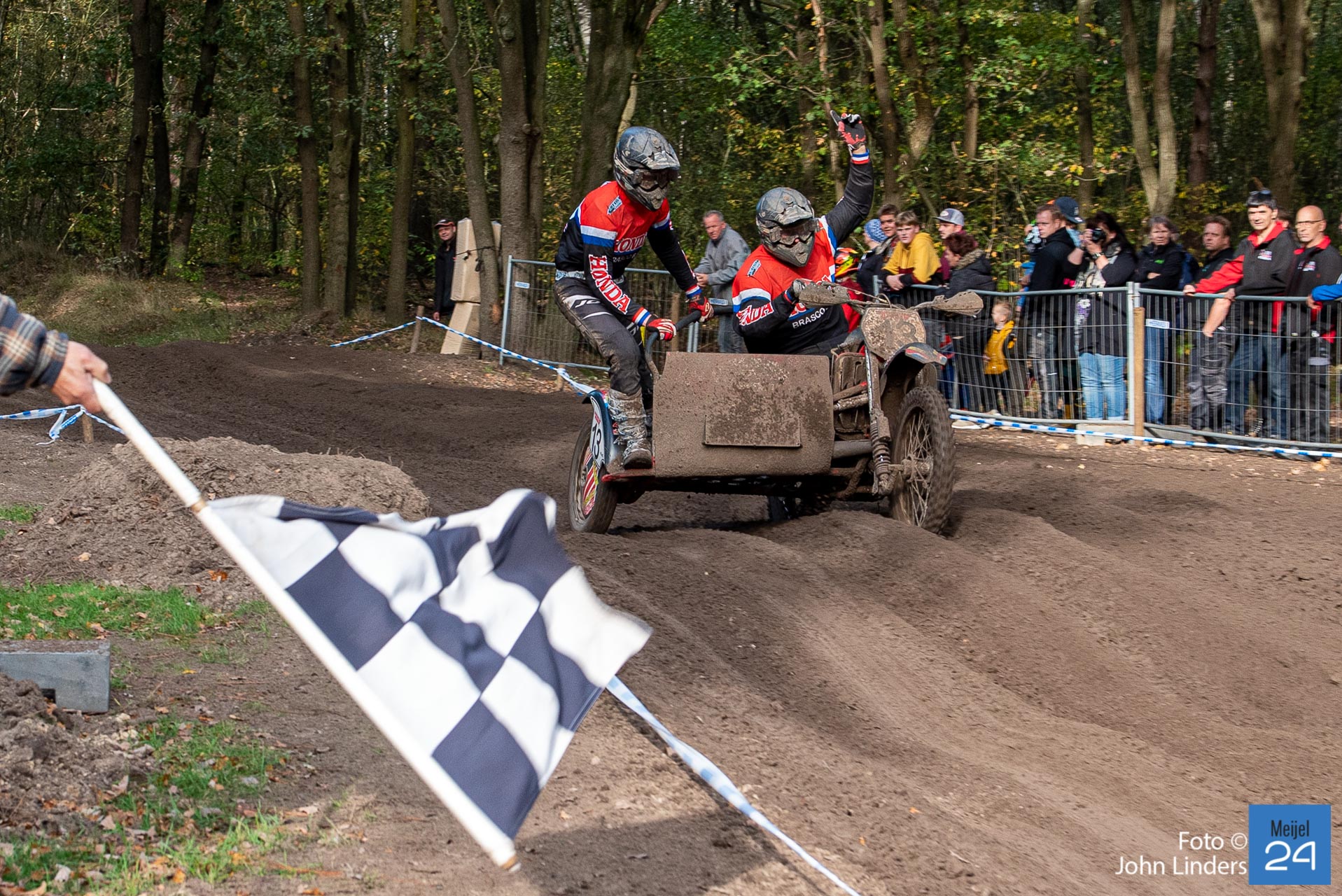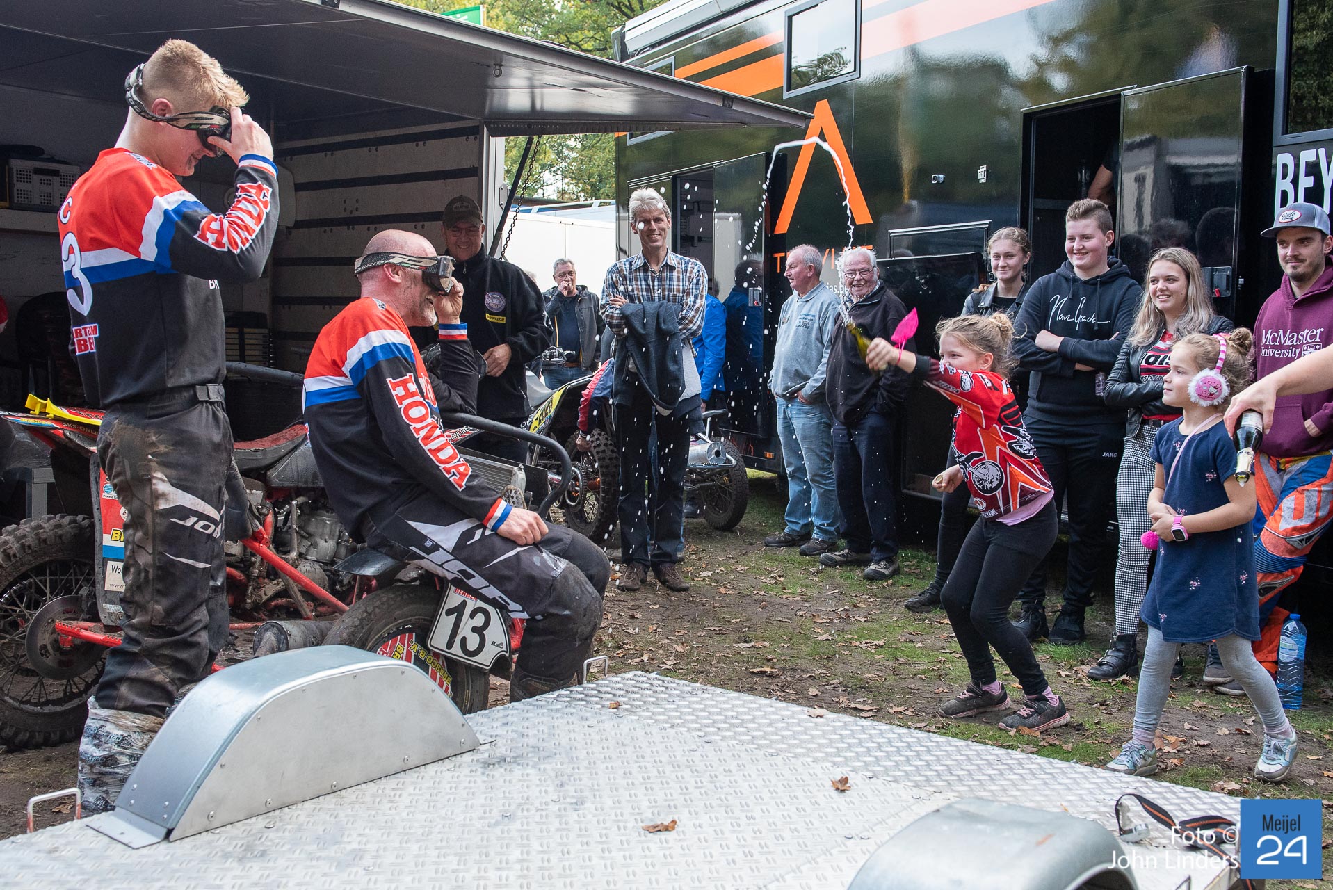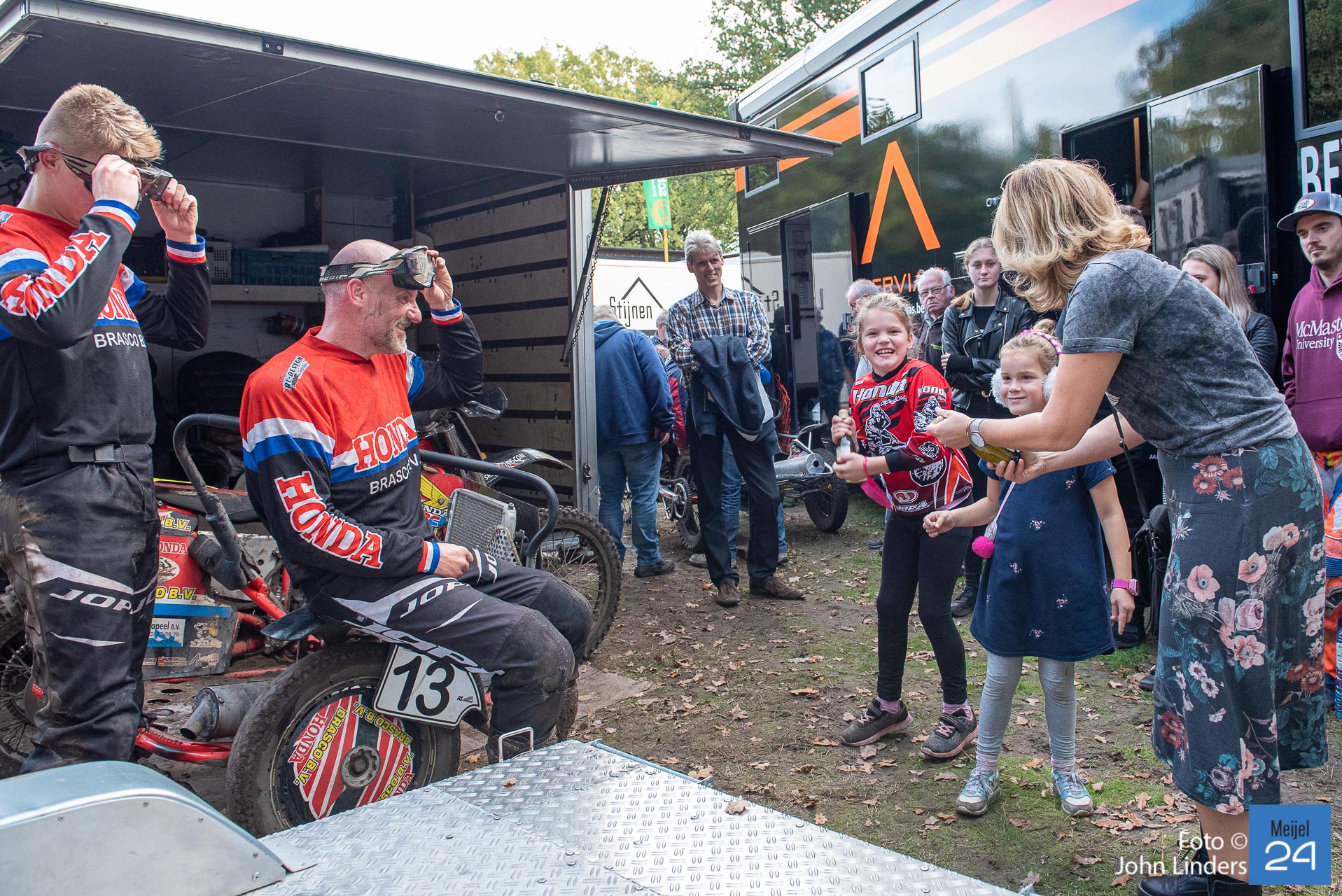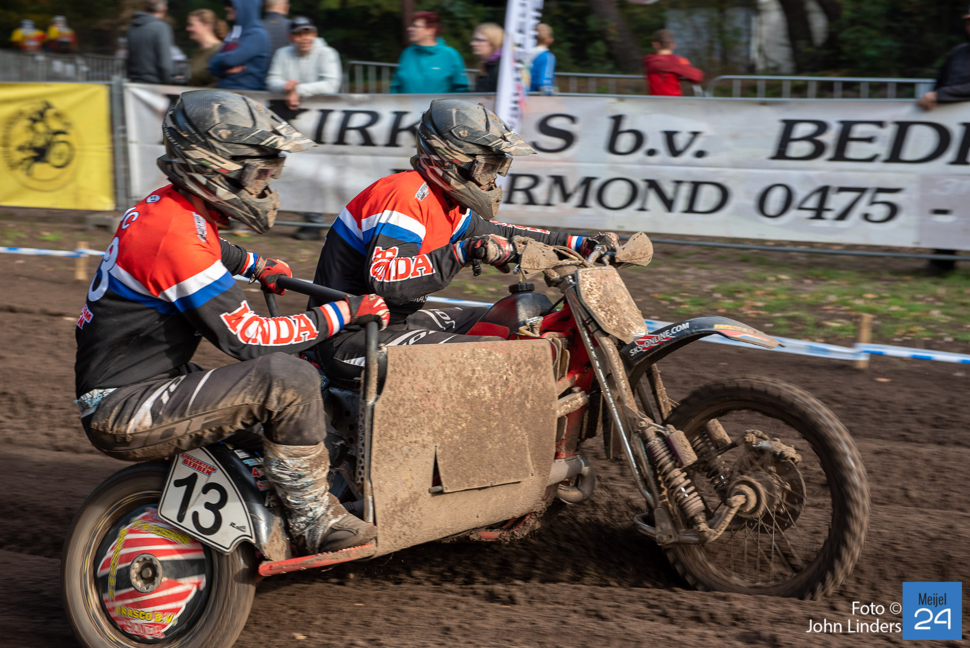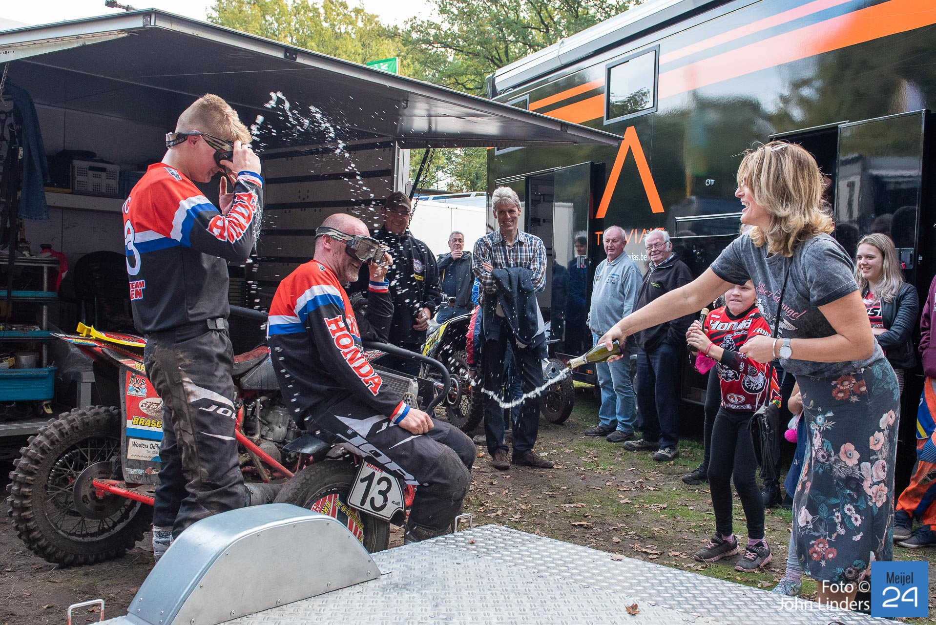 Veel familieleden en fans waren vandaag naar het circuit aan de Peelweg 1 in Meijel gekomen om het zijspan duo te feliciteren en te huldigen. Tijdens de tweede manche werd het nieuwe nummerbord voor op de motor geschroefd en van startnummer 13 werd snel de 3 weggehaald om met startnummer 1 mee te rijden.