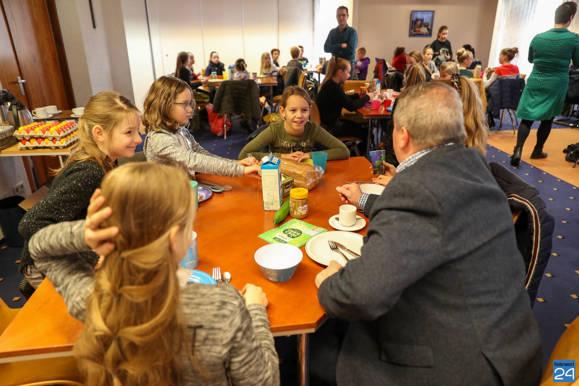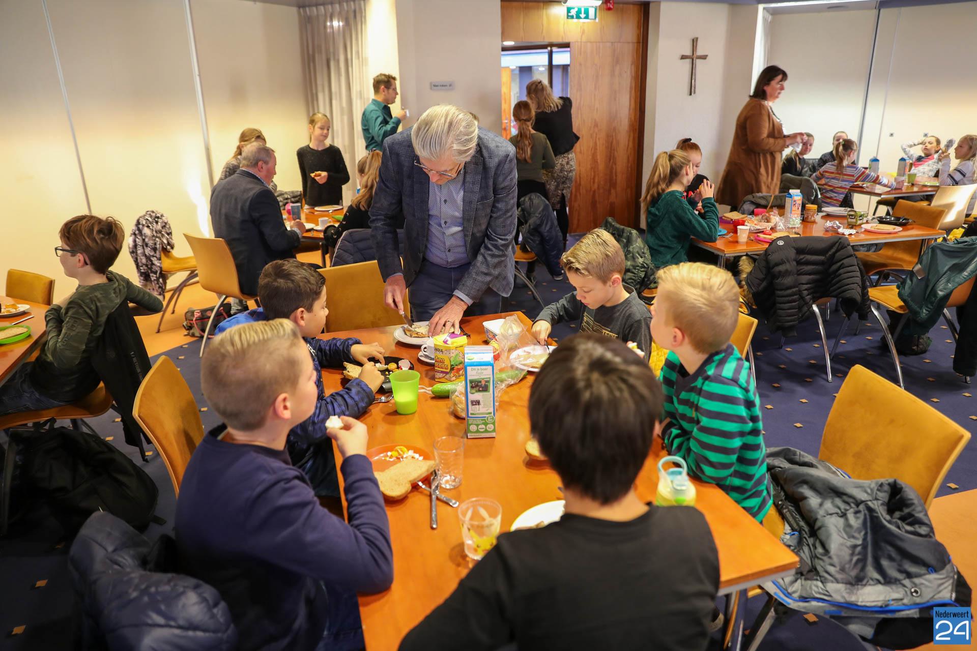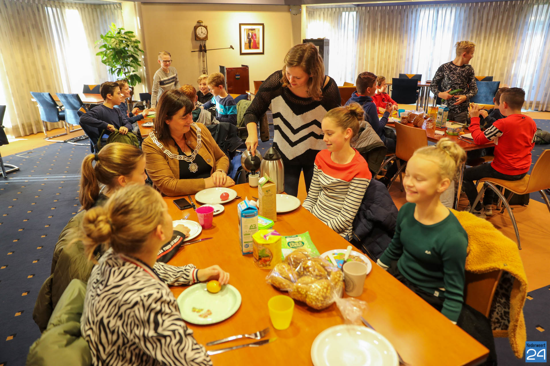 Voor 55 kinderen van OBS De Klimop uit Nederweert begon deze vrijdagochtend een beetje anders dan normaal. Thuis een boterham eten was er niet bij. Ze gingen namelijk samen met burgemeester Op de Laak ontbijten in het gemeentehuis.