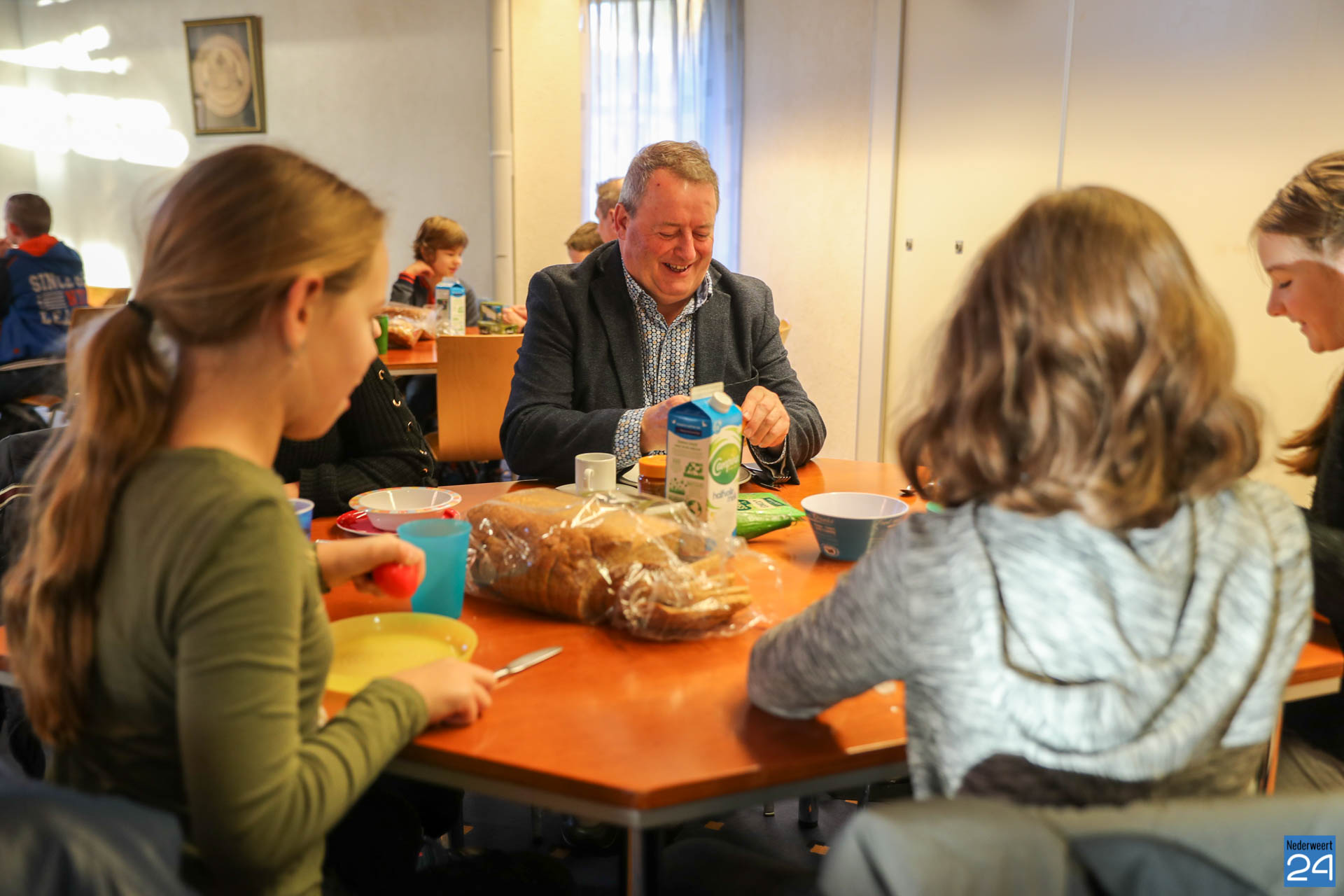 Burgemeester Op de Laak onderstreept, net als zo’n 250 collega-burgemeesters in het hele land, het belang van een gezond ontbijt. Aan de ontbijttafel maakten de kinderen en de burgemeester uitgebreid kennis met elkaar. Ook de wethouders, Henk Cuijpers, Frank Voss en Peter Koolen, waren erbij om samen met de leerlingen te eten.