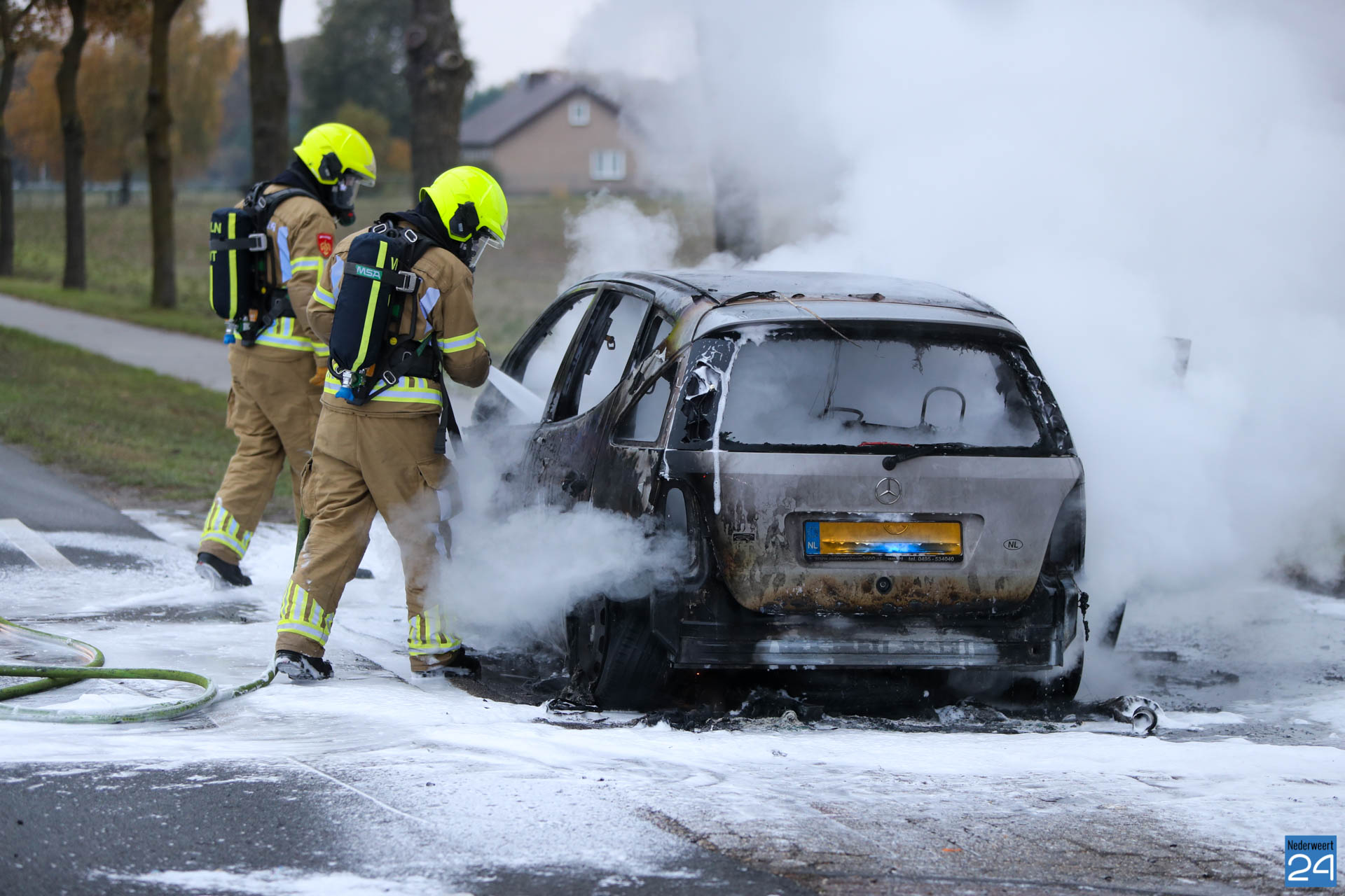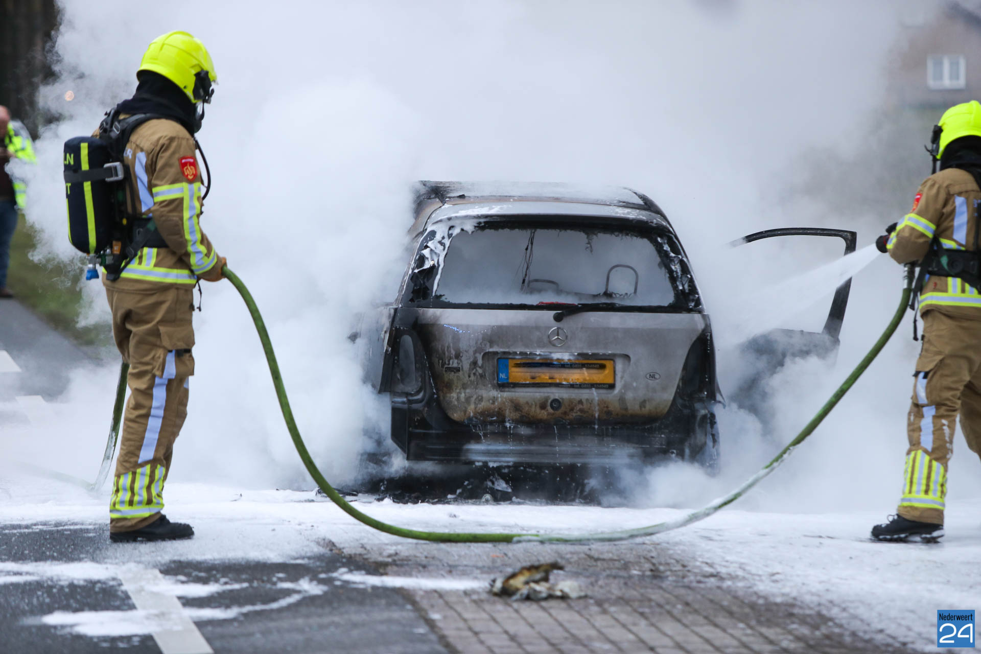 De auto reed vanaf de snelweg A2 richting Weert toen ter hoogte van C’est La Vie de auto plotseling begon te roken. De inzittenden wisten de auto nog aan de kant te zetten. Daarna moesten ze lijdzaam toezien hoe hun voertuig in vlammen opging.