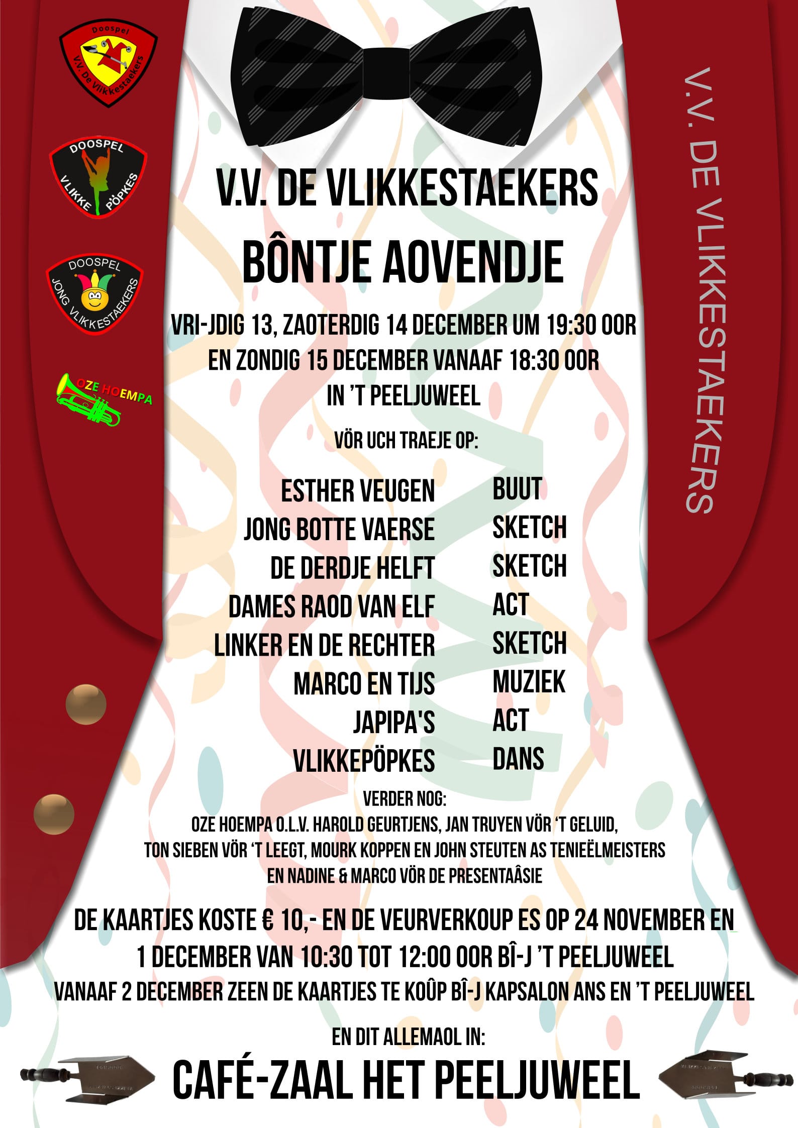 De Vlikke hopen je allen te zien tijdens een van de bonte avonden op 13, 14 en 15 december.