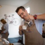 Roy is Barista trainer en Espressotechneut. “Een heerlijke kop koffie, daar kan ik van genieten, pure passie. Telkens weer. Het is een vak om een goed kop koffie te zetten maar dit kan iedereen leren. Gelukkig hebben we tegenwoordig allemaal apparaten die dat uitstekend voor ons doen“, vertelt Roy