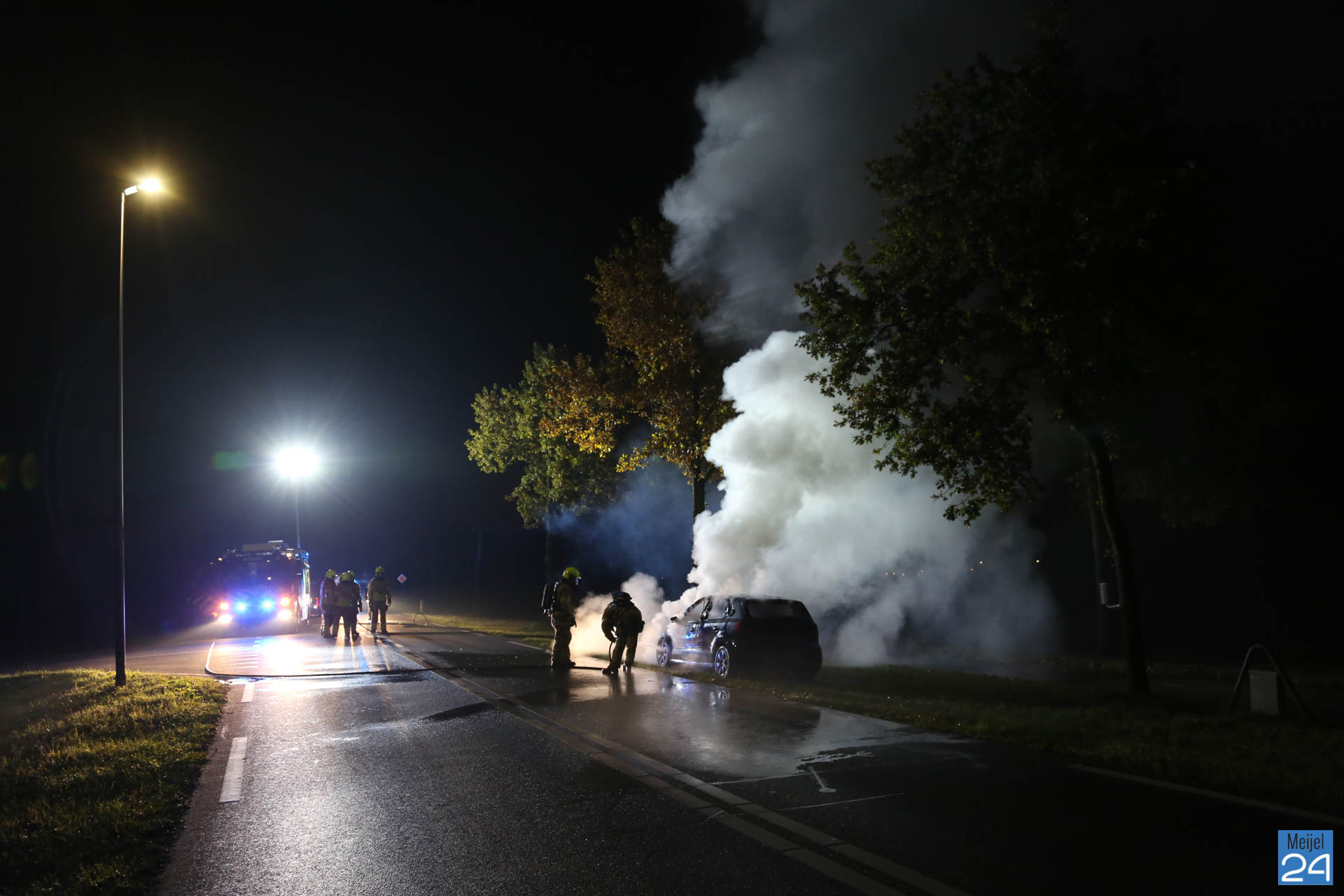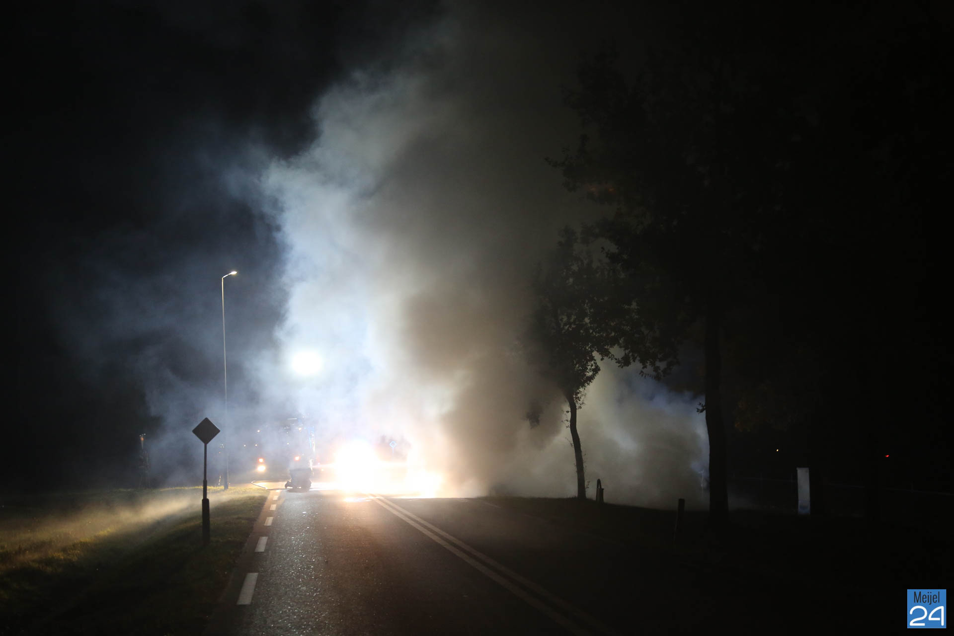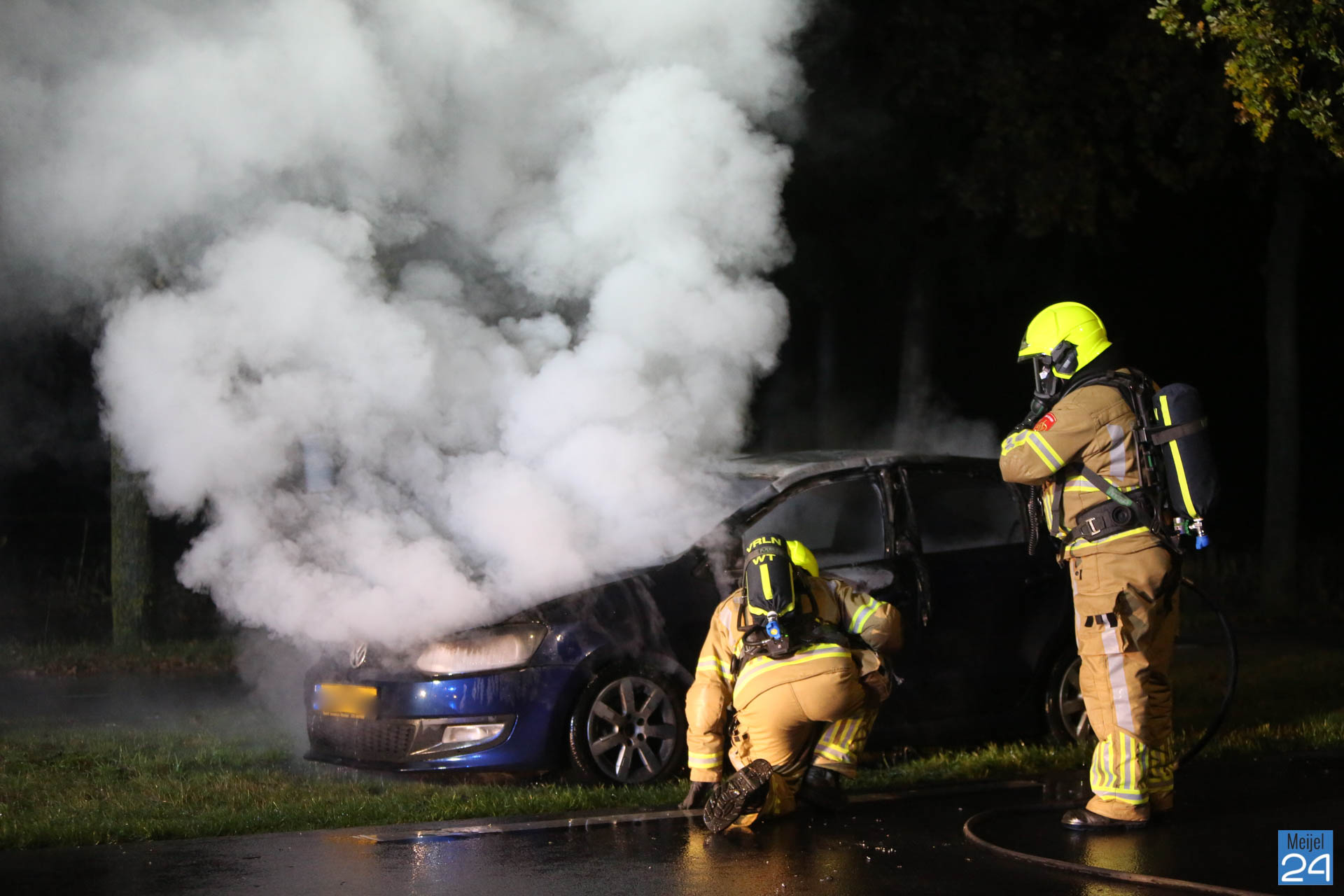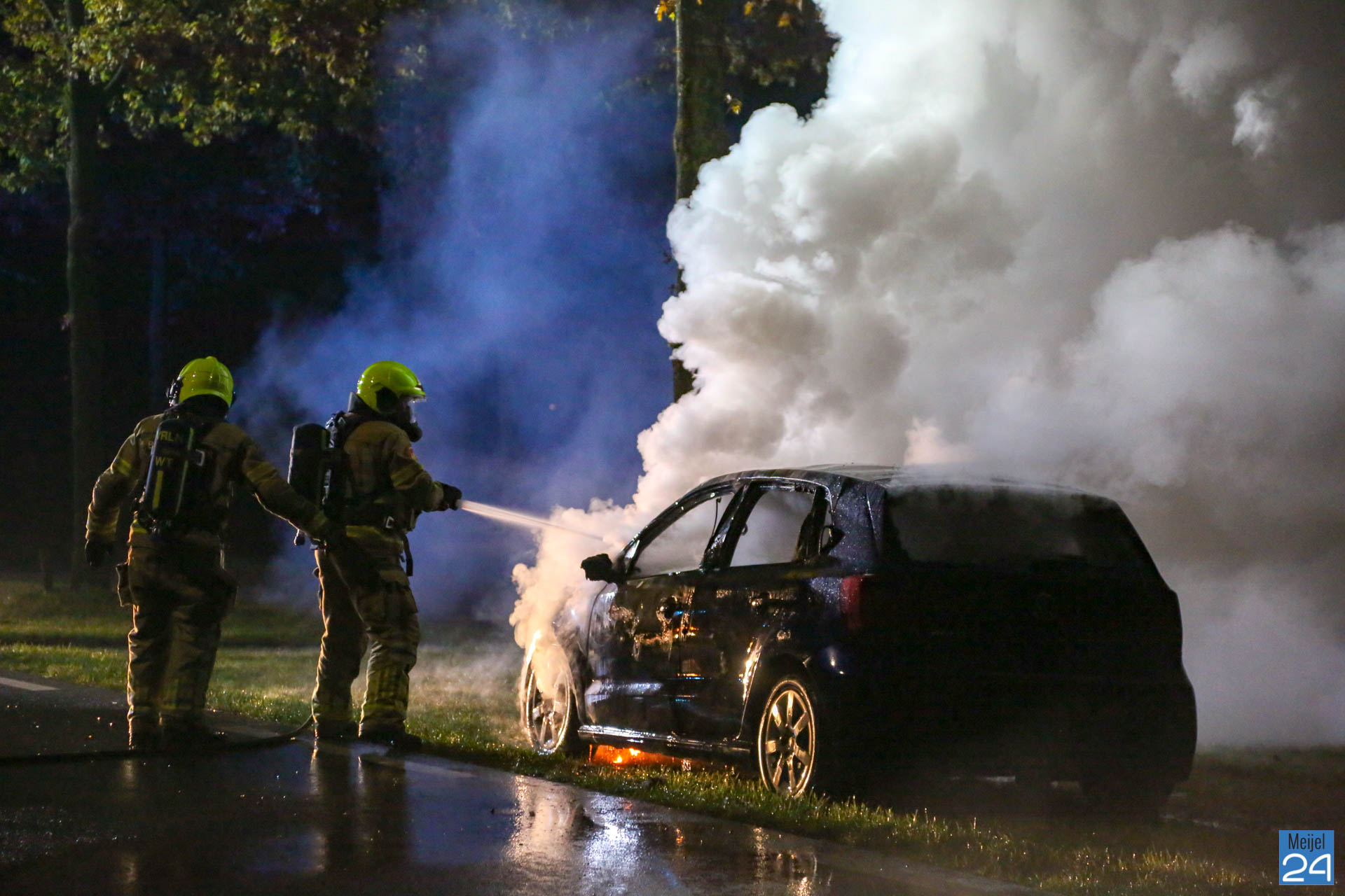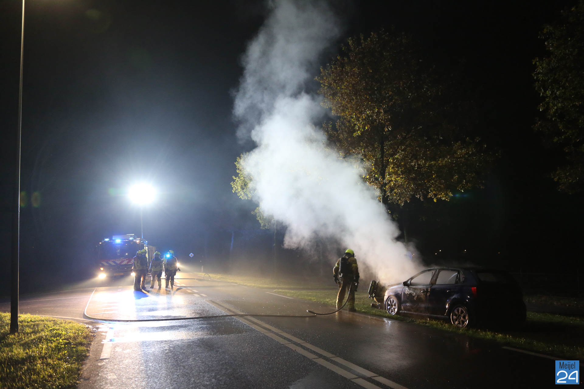 Een personenauto is donderdagavond volledig uitgebrand aan de Meijelseweg N279 in Heibloem. Dat gebeurde tegen half twaalf ter hoogte van de Gesseltweg.