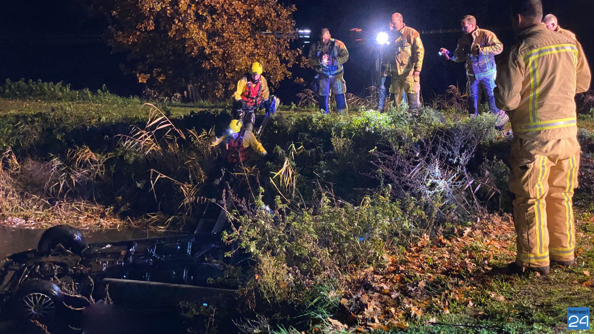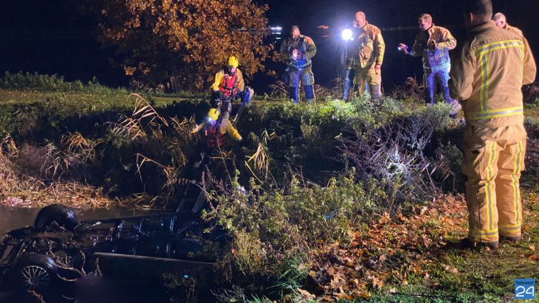 De hulpdiensten zijn donderdagavond uitgerukt voor een personenauto welke op de kop in een sloot is belandt aan de Broekstraat in Someren.
