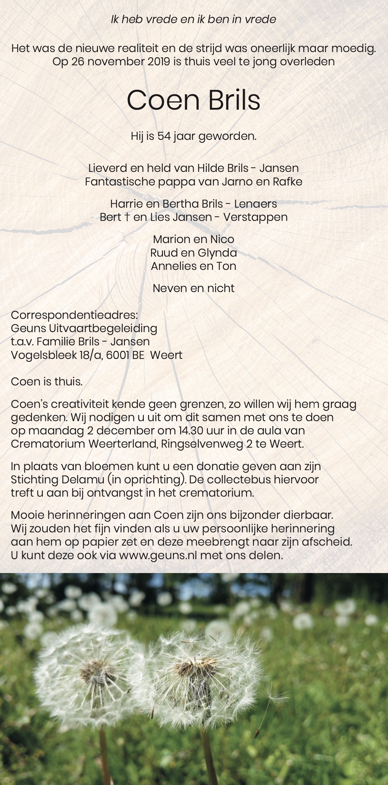 10. Familie Brils heel veel kracht en sterkte gewenst de komende tijd bij het gemis van Coen die wij zowel zakelijk als klant hebben gekend