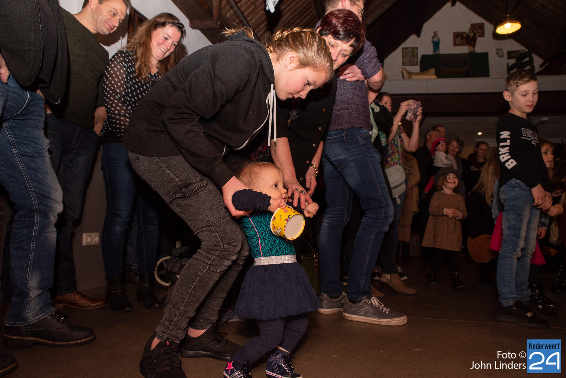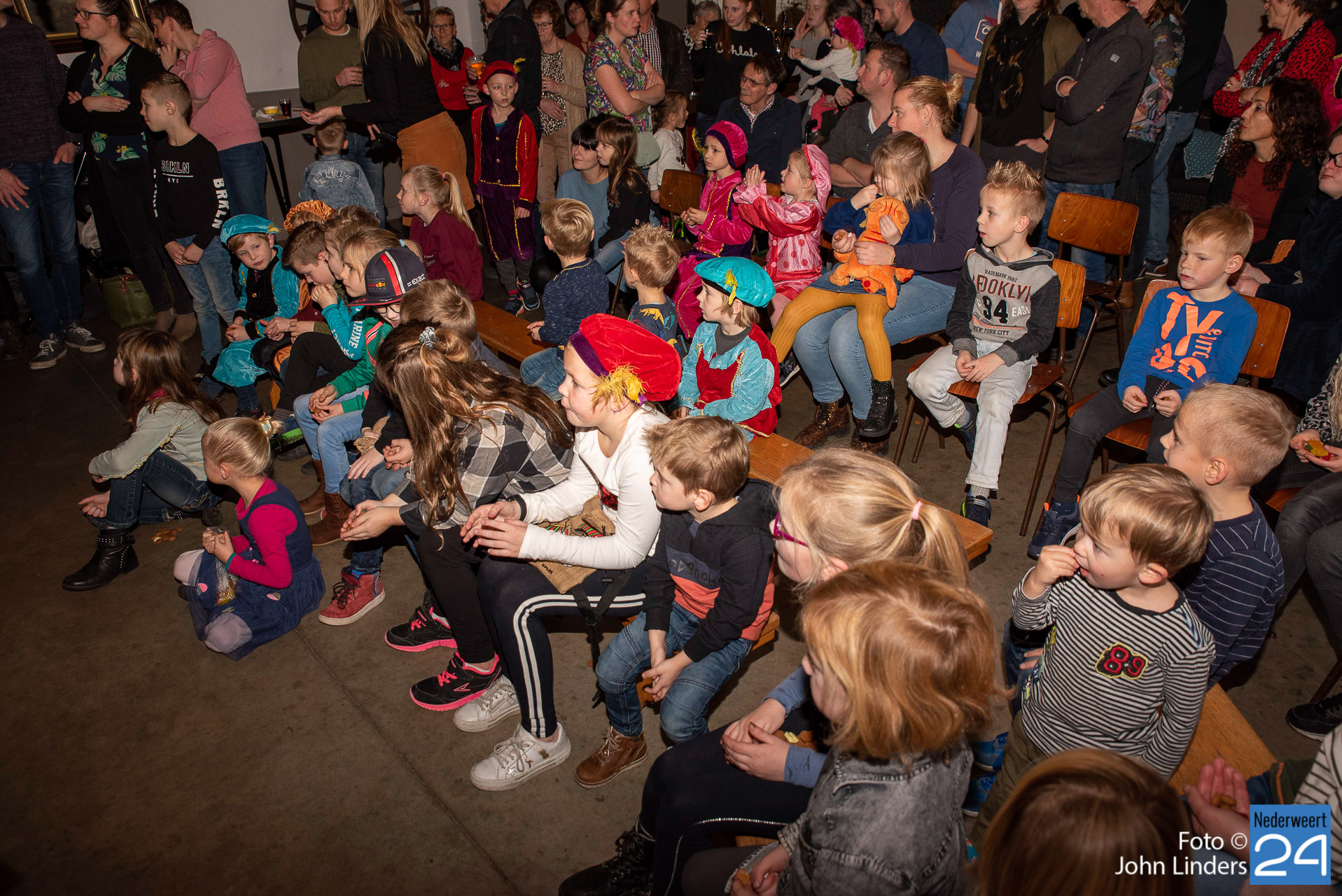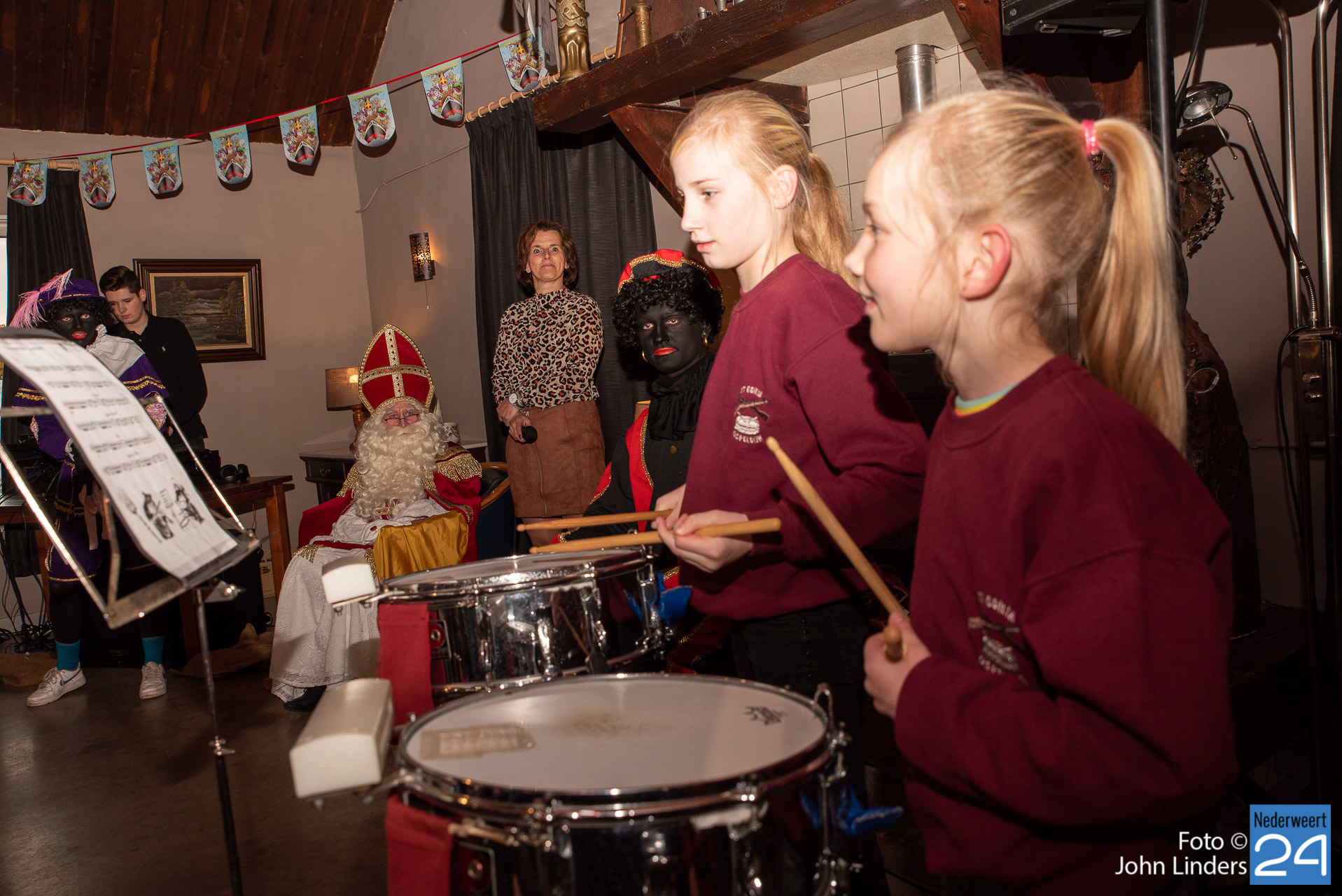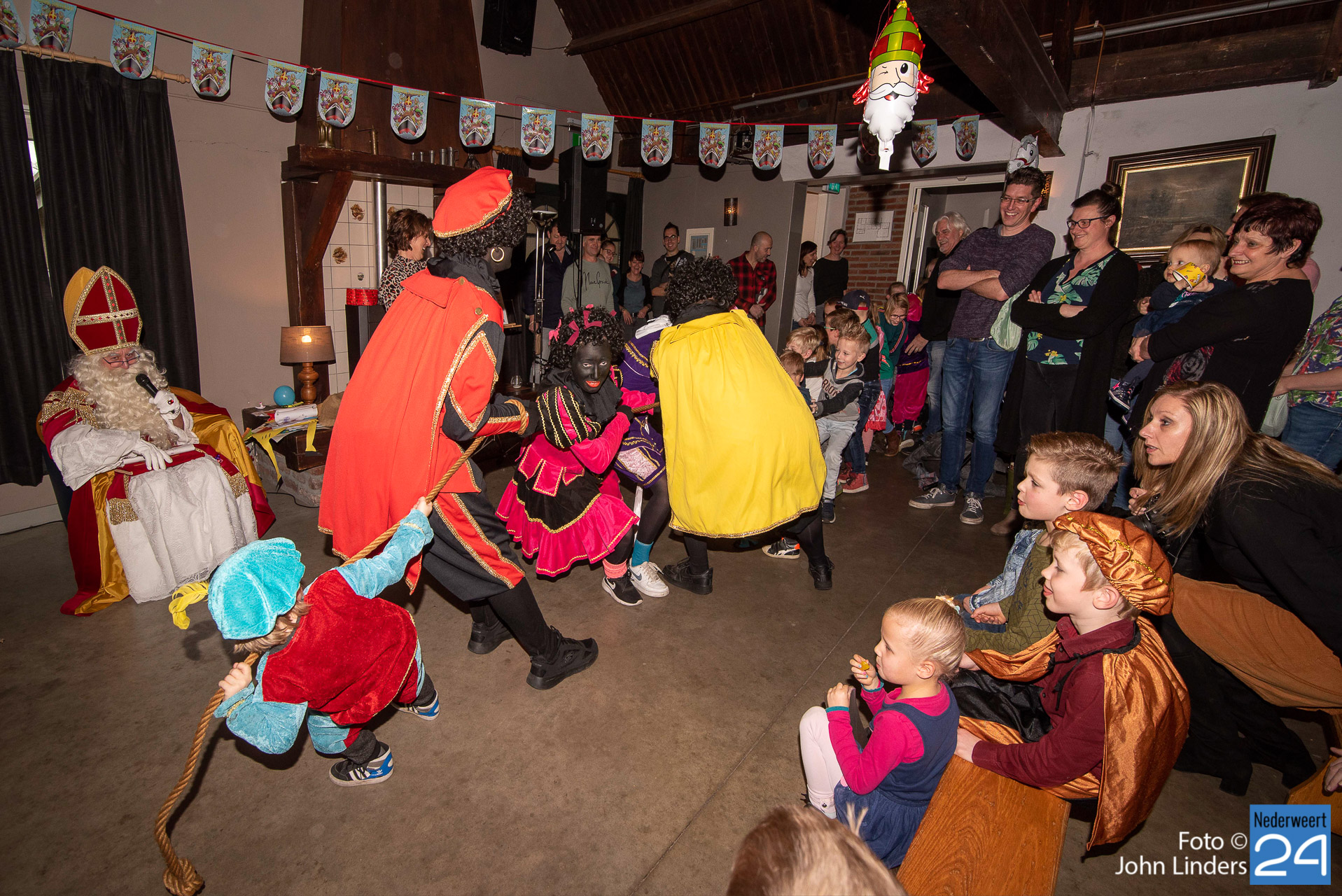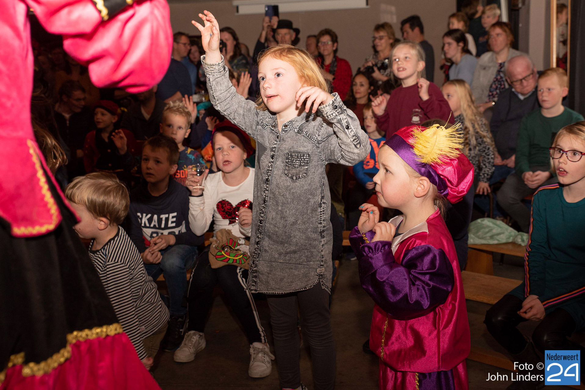 Ruim 40 kinderen hadden mooie kleurplaten, tekeningen, knutselwerkstukjes en één fopcadeautje gemaakt voor Sinterklaas. Er werd voor Sinterklaas een stukje gedrumd en ook de zwarte Pieten mochten dit even uitproberen.  De kinderen deden samen met de Pieten een dansje, een wedstrijdje taai taai happen en er werd een echte wedstrijd touwtrekken gehouden. “Alle kinderen van Ospeldijk zijn wel erg sterk” zei Sinterklaas. De Zwarte Pieten konden vandaag niet winnen.