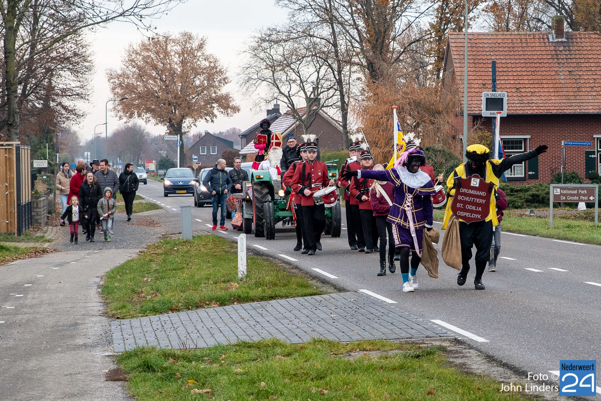 De kinderen in Ospeldijk hebben vandaag Sinterklaas met de Pieten hartelijk ontvangen bij “de Meule”. Sinterklaas kwam vandaag met de tractor omdat hij solidair wilde zijn met de boeren in Nederland en hen een beetje extra steun wilde geven. Leden van drumband St. Odilia hebben Sinterklaas opgehaald en muzikaal begeleid.