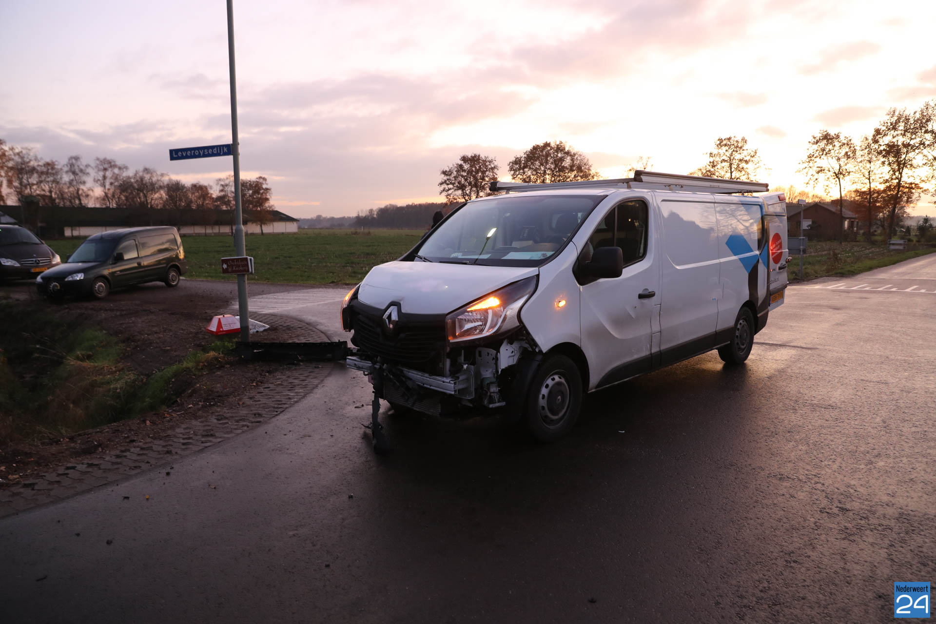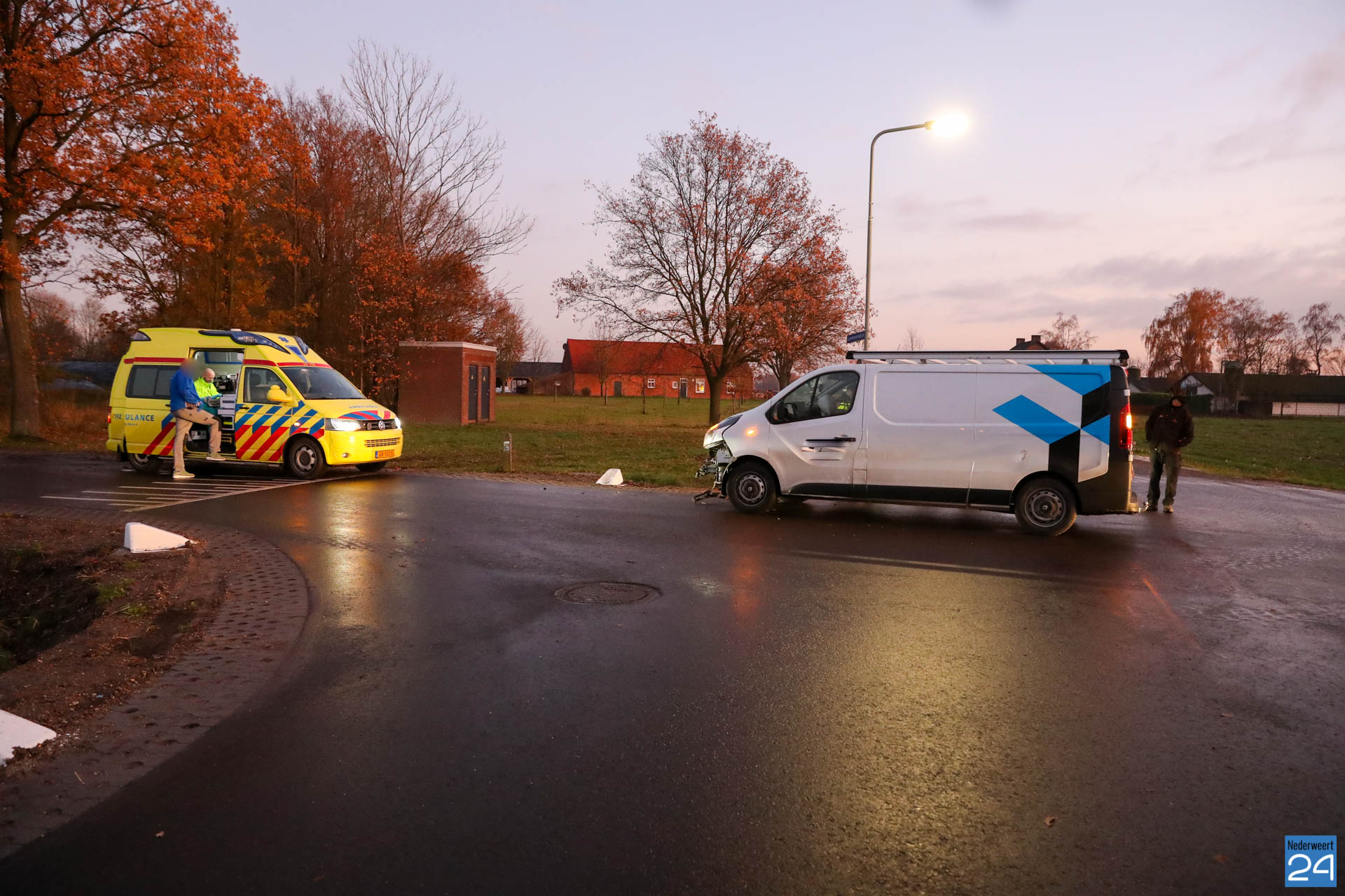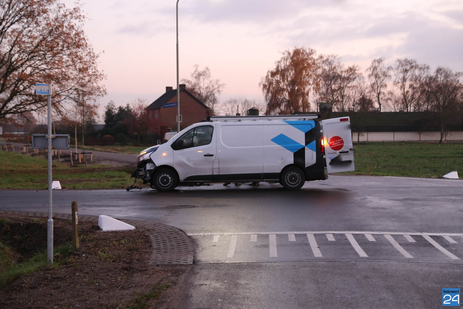 Maandagmiddag rond kwart voor vijf zijn twee bestelbussen met elkaar in botsing gekomen op de kruising Kruisstraat – De Riet in Nederweert-Eind.