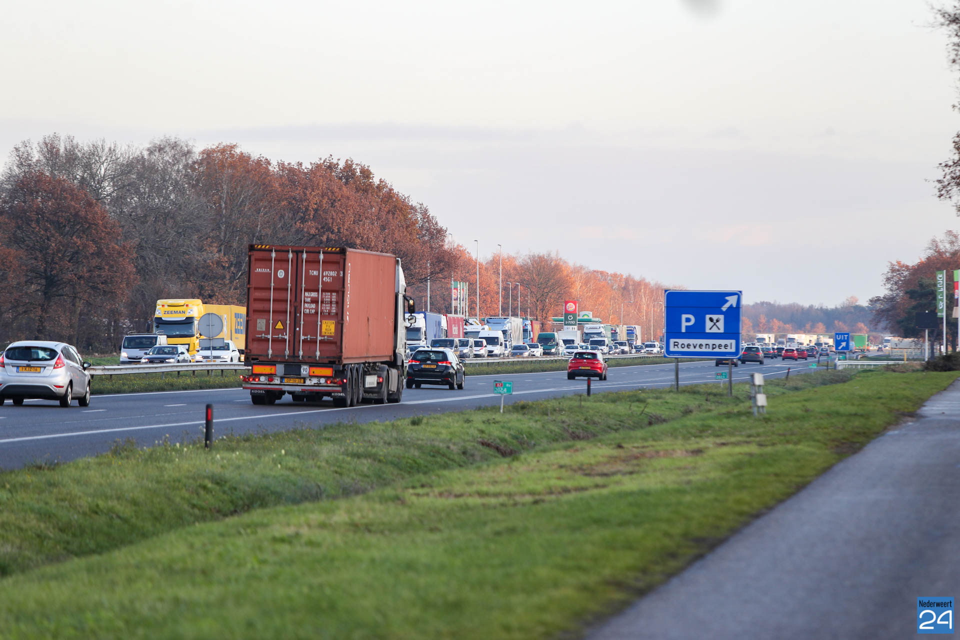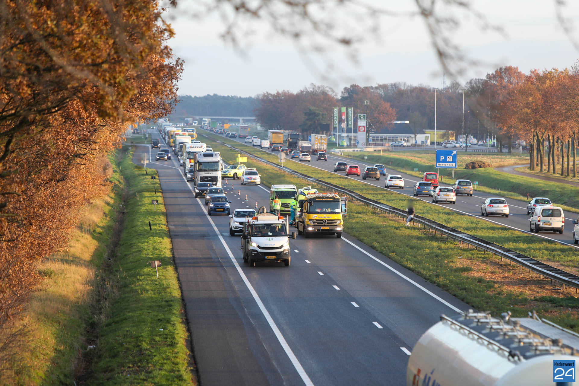 Door het ongeval was de weg tijdelijk afgesloten. Alleen via de vluchtstrook kon het verkeer langzaam doorrijden met een flinke file tot gevolg. Inmiddels is de weg weer vrij.