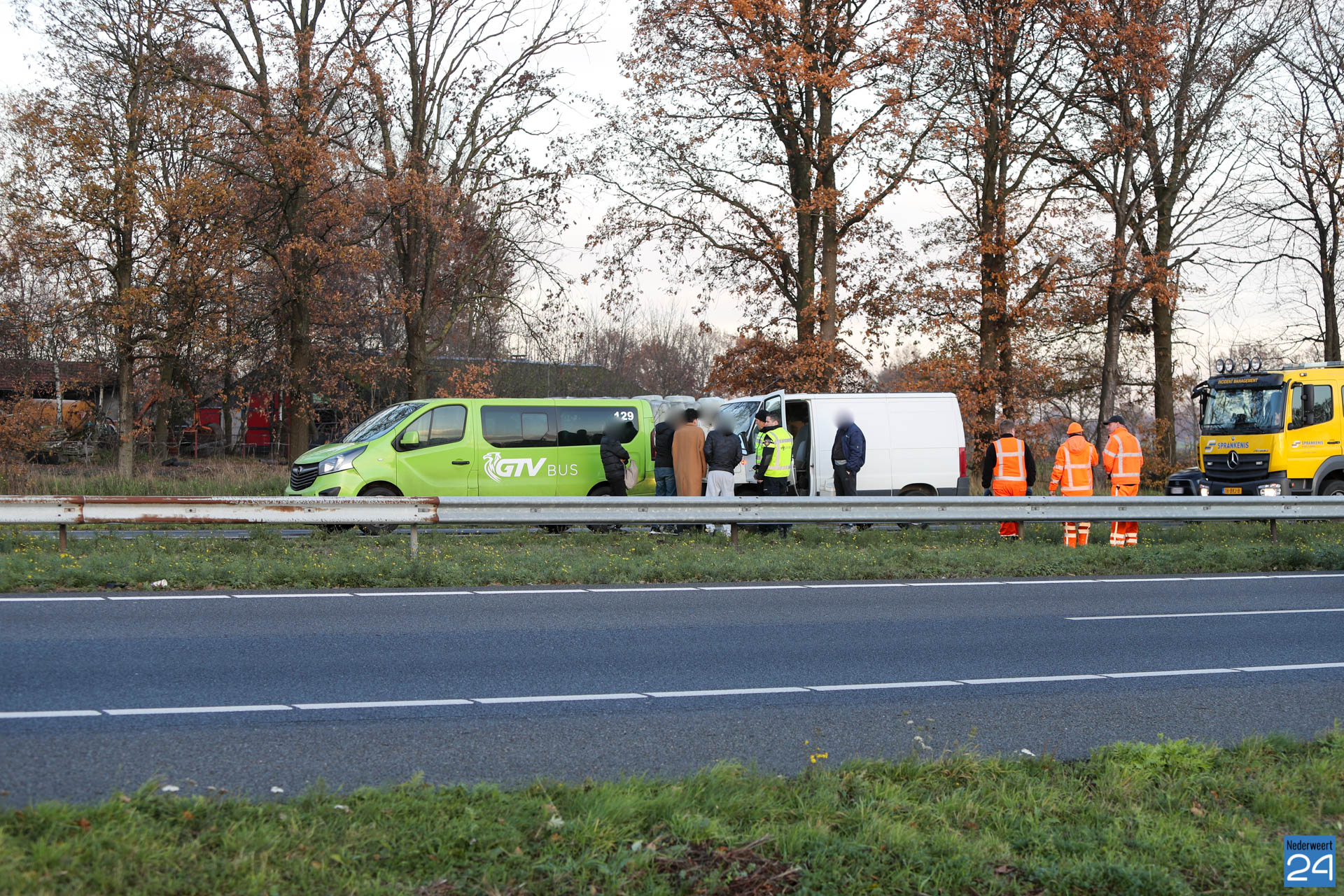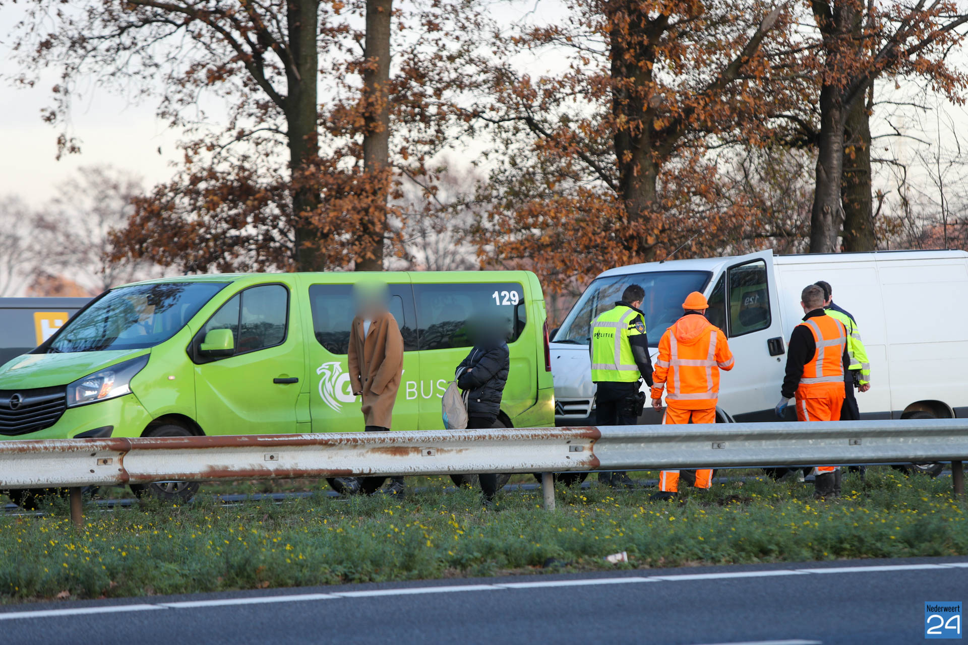 In de rijrichting vanuit Kelpen-Oler richting Nederweert zijn door onbekende oorzaak vijf voertuigen met elkaar in botsing gekomen. Drie bestelbussen en twee personenauto’s waren bij het ongeval betrokken.