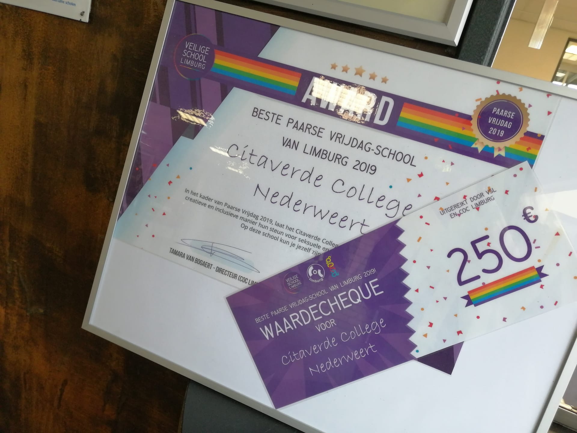 Citaverde College Nederweert is dit jaar uitgekozen tot de beste ‘Paarse Vrijdag School’ van Limburg. Ze wonnen een prijs van 250 euro. Een delegatie van het COC kwam speciaal naar Nederweert om deze prijs te overhandigen.