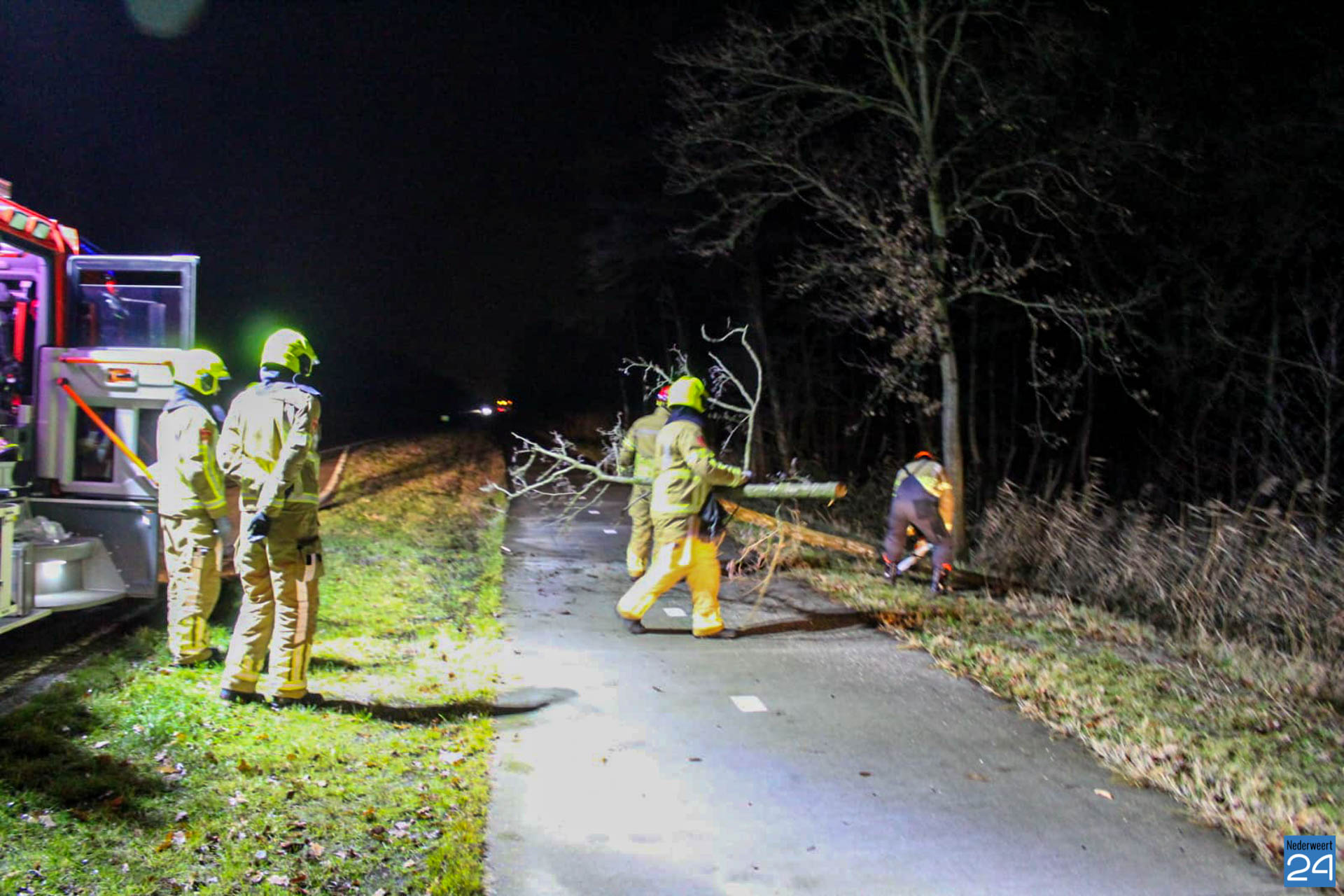 De brandweer van Weert kwam ter plaatse en heeft de boom met een kettingzaag in stukken gezaagd. De gemeente draagt zorg dat het hout wordt opgehaald.