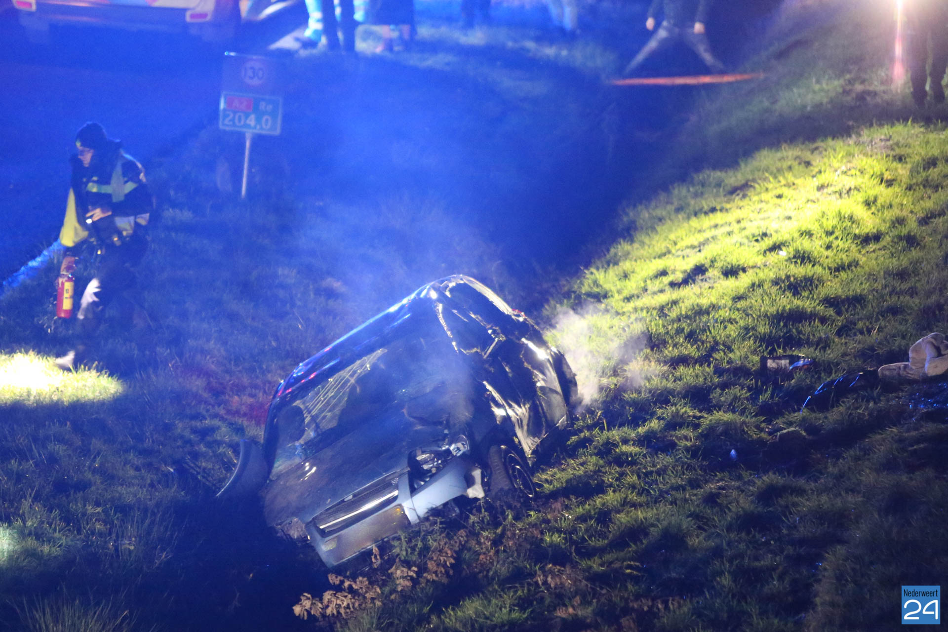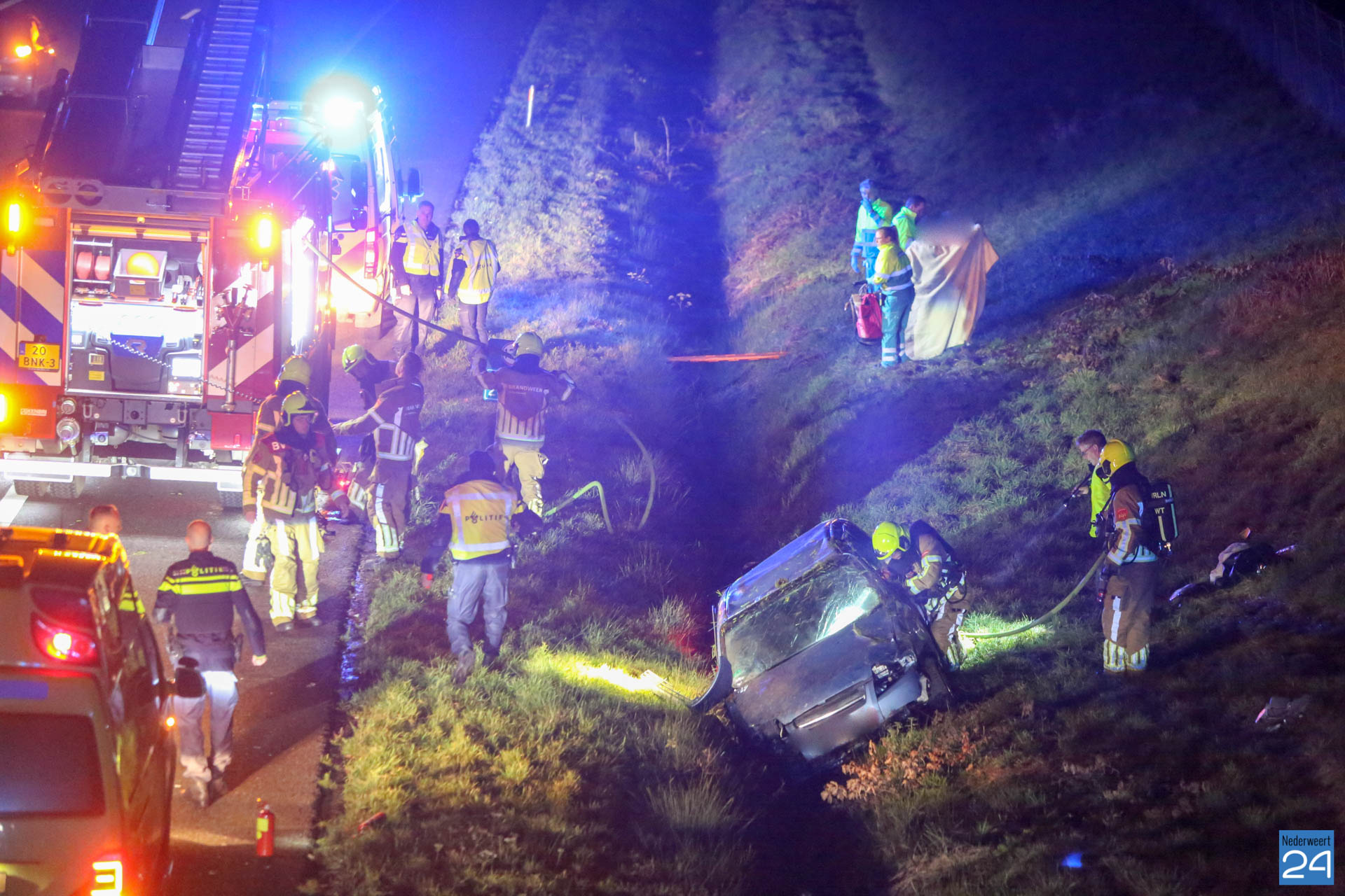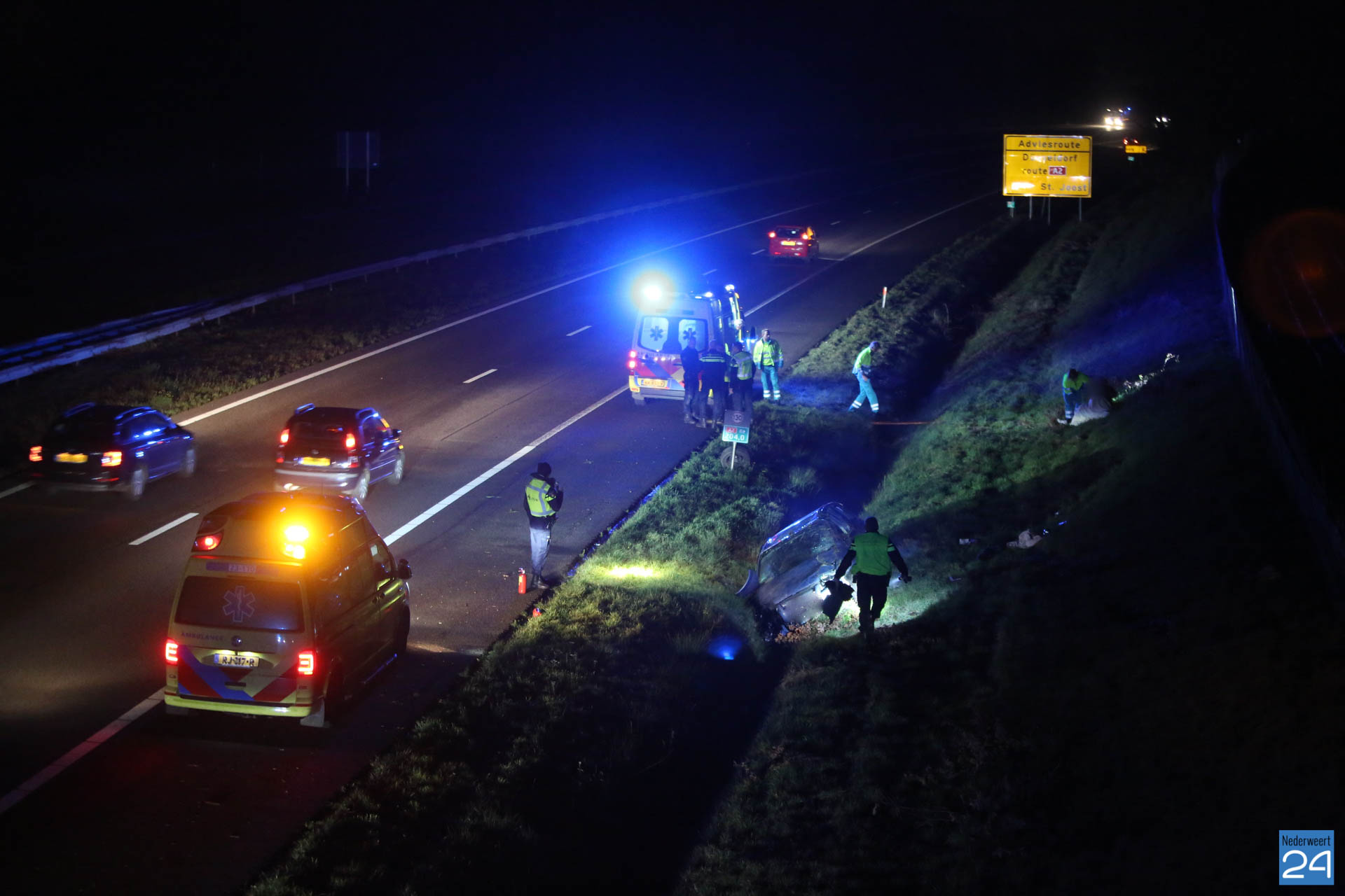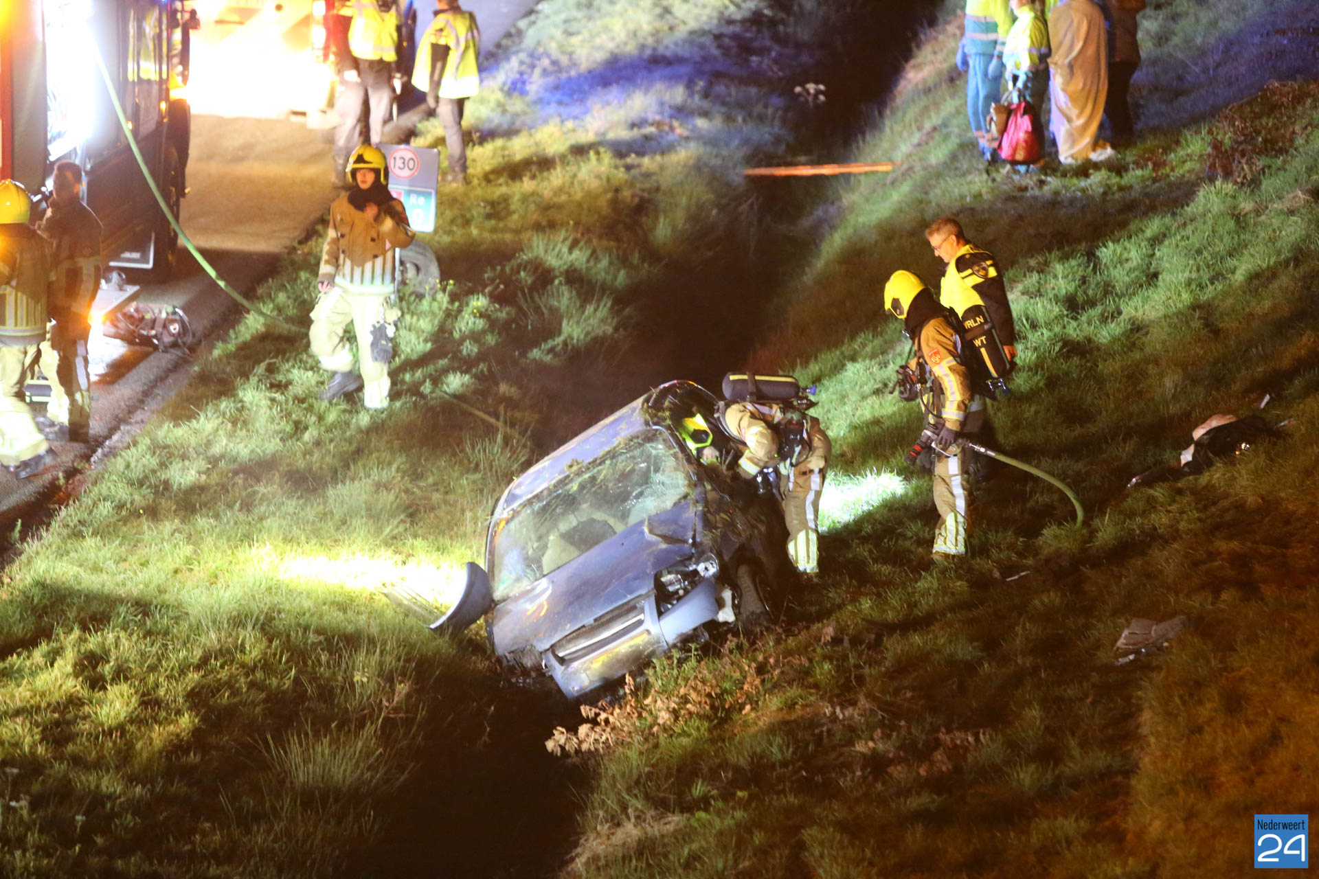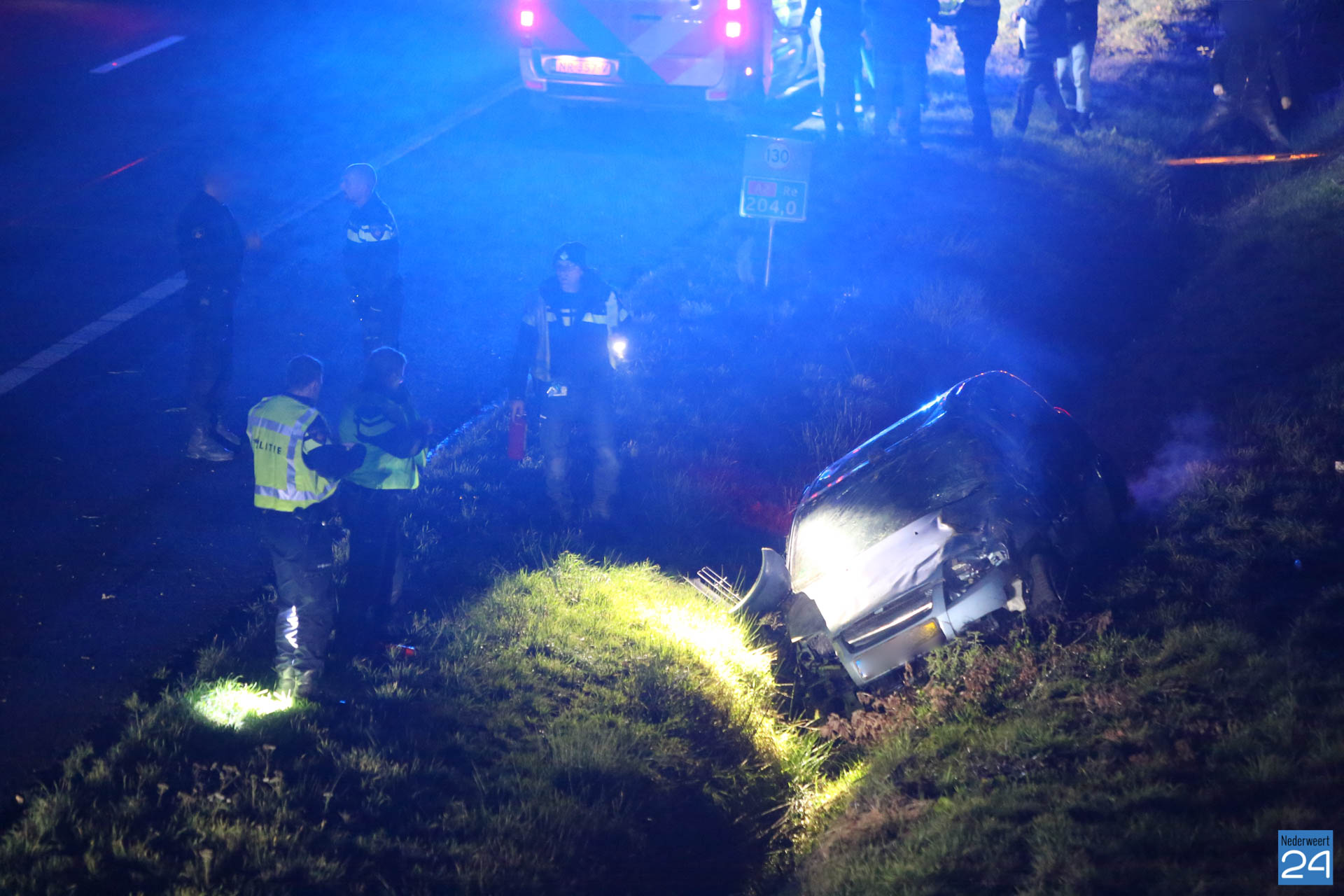 Een personenauto kwam ter hoogte van het viaduct Schoordijk in de slip en kwam vervolgens in de greppel terecht. Door de klap raakte het voertuig zwaar beschadigd. Politie, brandweer en drie ambulances kwamen ter plaatse voor hulpverlening. De slachtoffers zijn per ambulance naar het ziekenhuis gebracht.