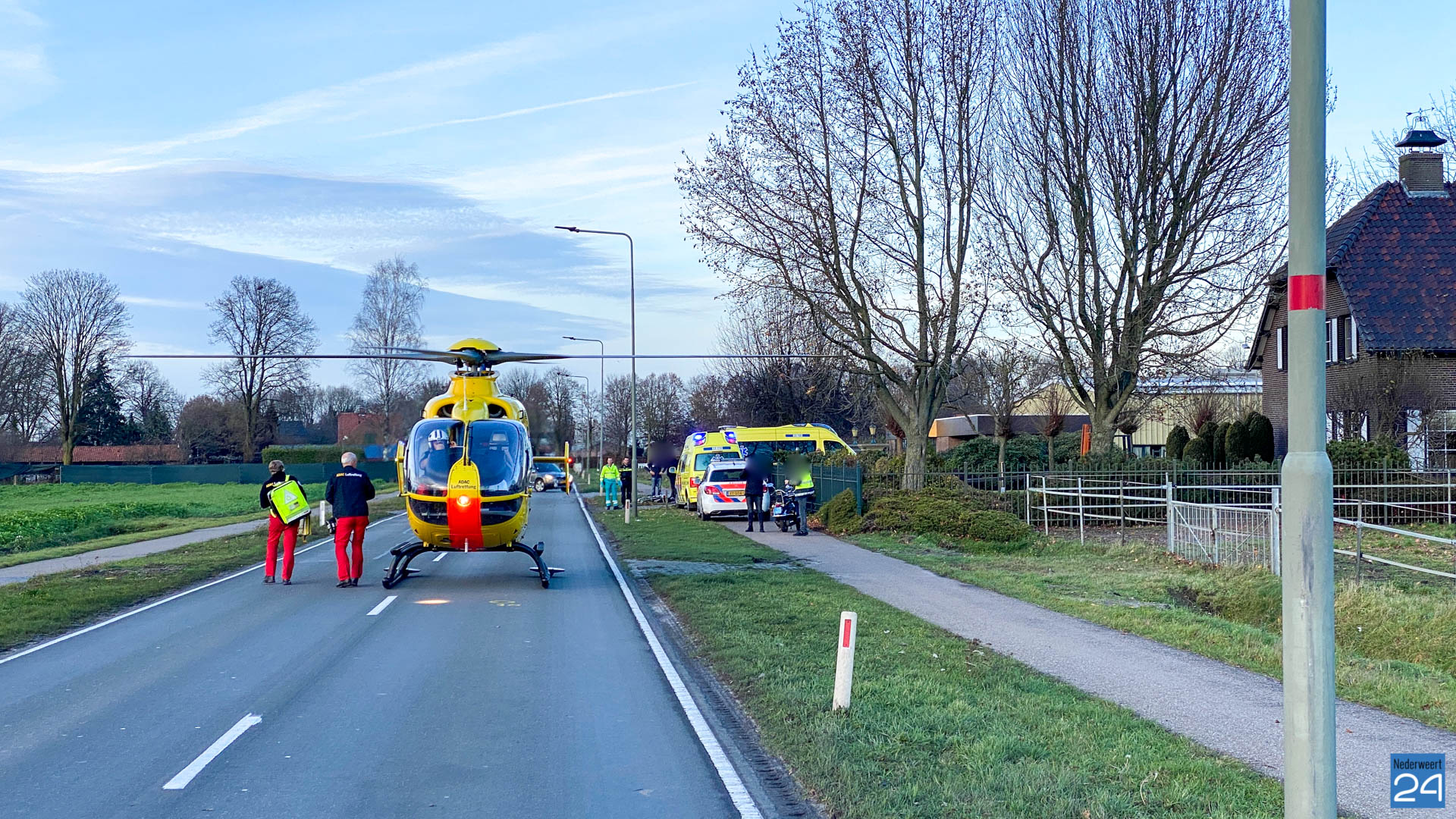 Donderdagmiddag is een vrouw ernstig gewond geraakt op het fietspad naast de Hoofstraat in Budschop, Nederweert.