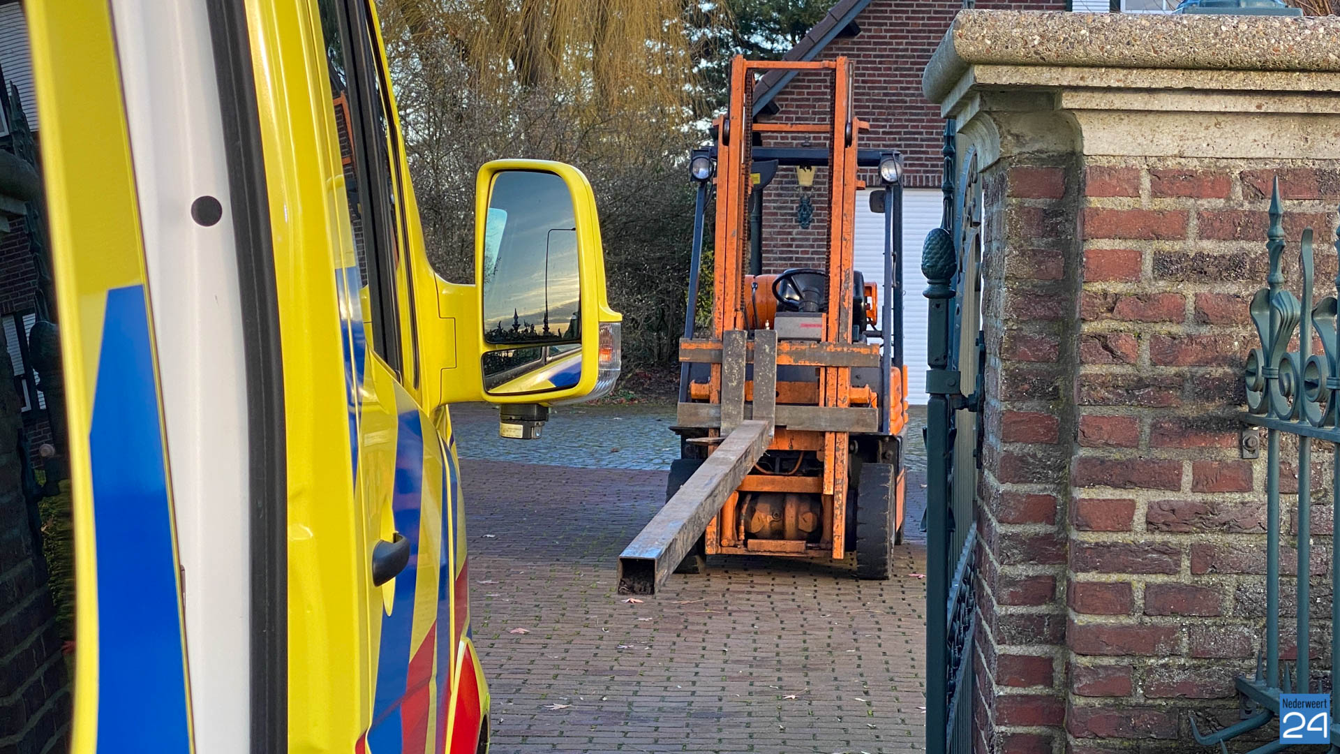 De vrouw fietste vanuit Nederweert-Eind richting Ospel. Bij een oprit van een woning kwam een heftruck met een stalen balk in de voorvork het fietspad op gereden. De vrouw is vervolgens, volgens een getuigen, tegen de stalen balk aan gefietst. Ze kwam ten val en raakte daarbij ernstig gewond.