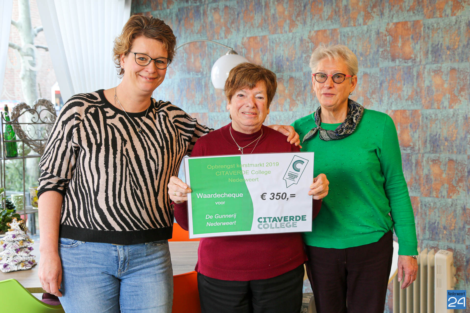 De uitvoering van de kerstmarkt is een groot succes geweest. Het is een druk bezette markt geweest en de opbrengst is geschonken aan de Gunnerij. Donderdagmiddag is het bedrag van € 350,- overhandigd aan de voorzitter van de Gunnerij.
