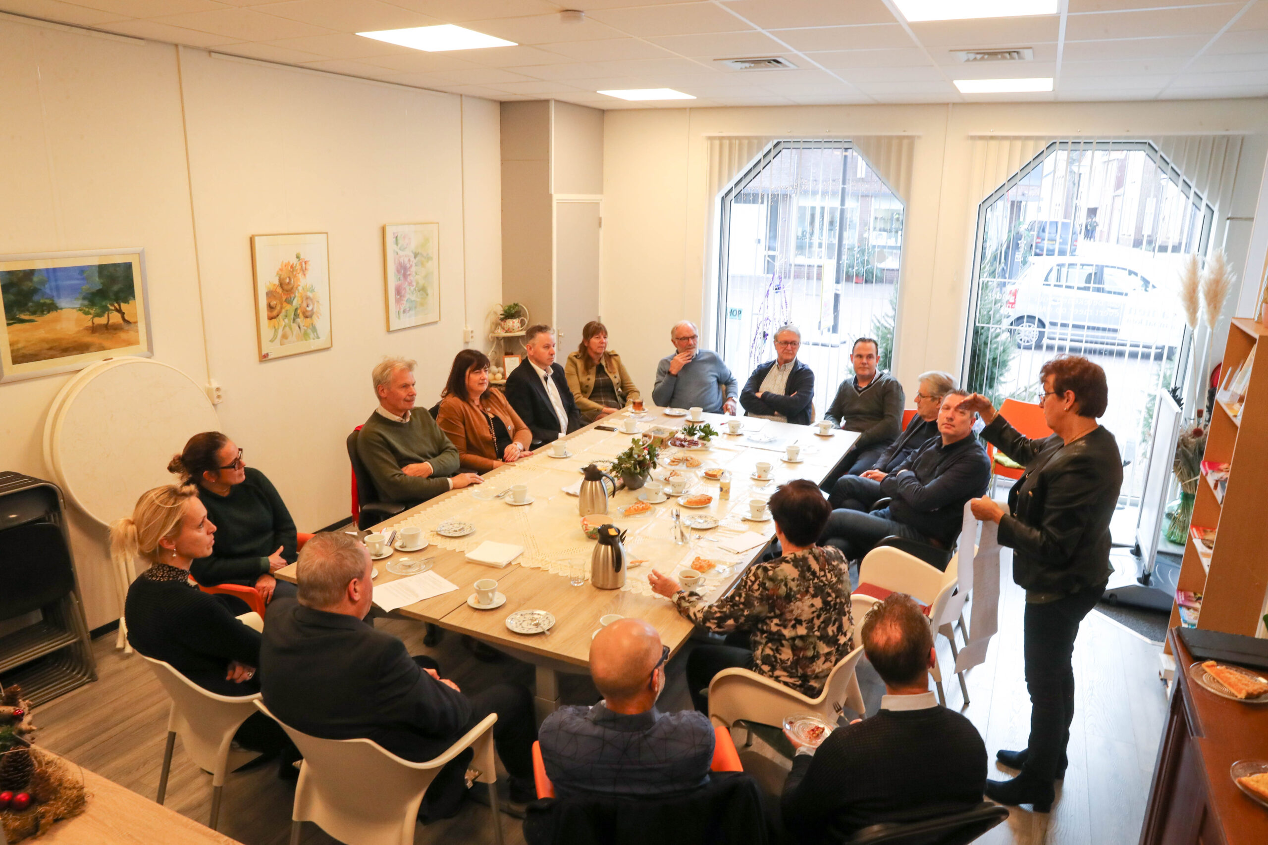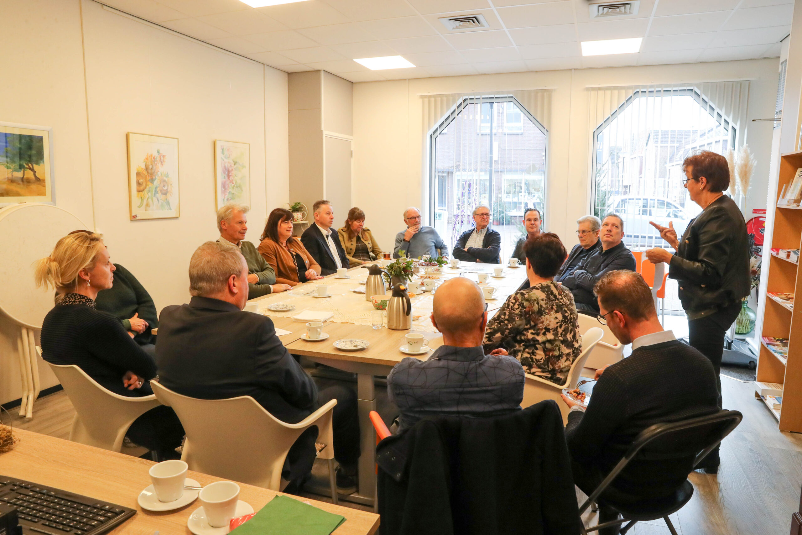 Om 13.00 uur heetten de vrijwilligers van de Huiskamer St. Joseph en het Wandelnetwerk het college welkom bij de Gunnerij. Beheergroep Dierenweide West vertelde over de toekomstvisie van deze nieuwe werkgroep. Om 14.15 uur ging het gezelschap naar de naastgelegen PopUp-galerie voor uitleg over de nieuwe expositie en over andere activiteiten die hier plaatsvinden. Daarna werd een bezoek gebracht aan gemeenschapshuis De Pinnenhof. Daar vertelden de mensen van het Eetpunt, het Repair Café en de Klussendienst over deze laagdrempelige initiatieven. Het programma werd Bi-j Siem afgesloten, alwaar in een informele sfeer nagepraat werd.