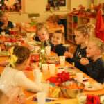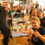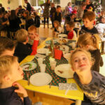 Aansluitend aan het kerstverhaal werd er afscheid genomen van de ouders en gingen de kinderen naar binnen om samen te genieten van het 3 gangen kerstdiner. De kinderen hadden allemaal zelf lekkere hapjes gemaakt waar ze samen van konden genieten. De heerlijk eigen gemaakte soep met balletjes, de verschillende kersthapjes, allemaal gemaakt door de leerlingen. Als afsluiter kon iedereen genieten van een heerlijk toetje van het toetjesbuffet.