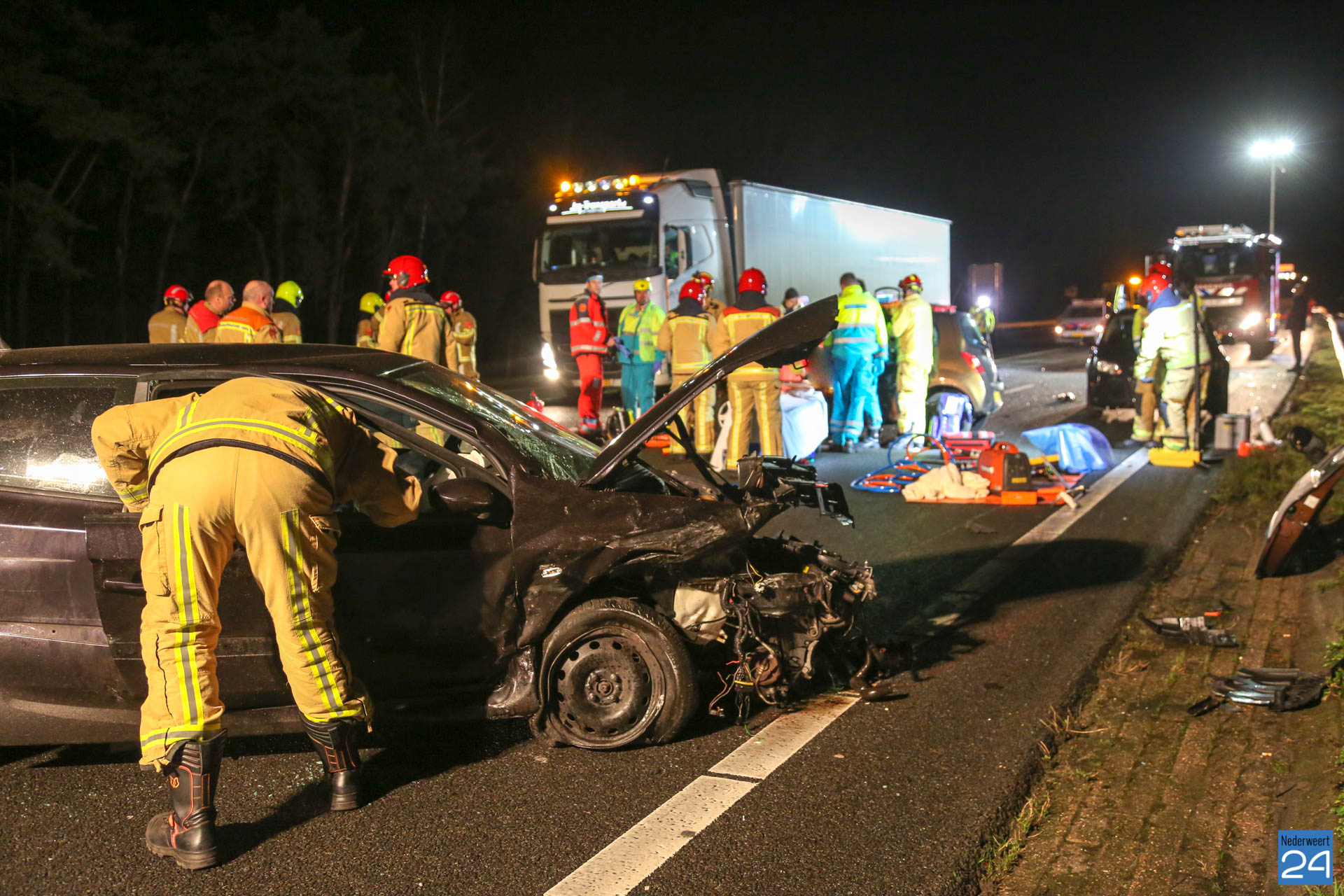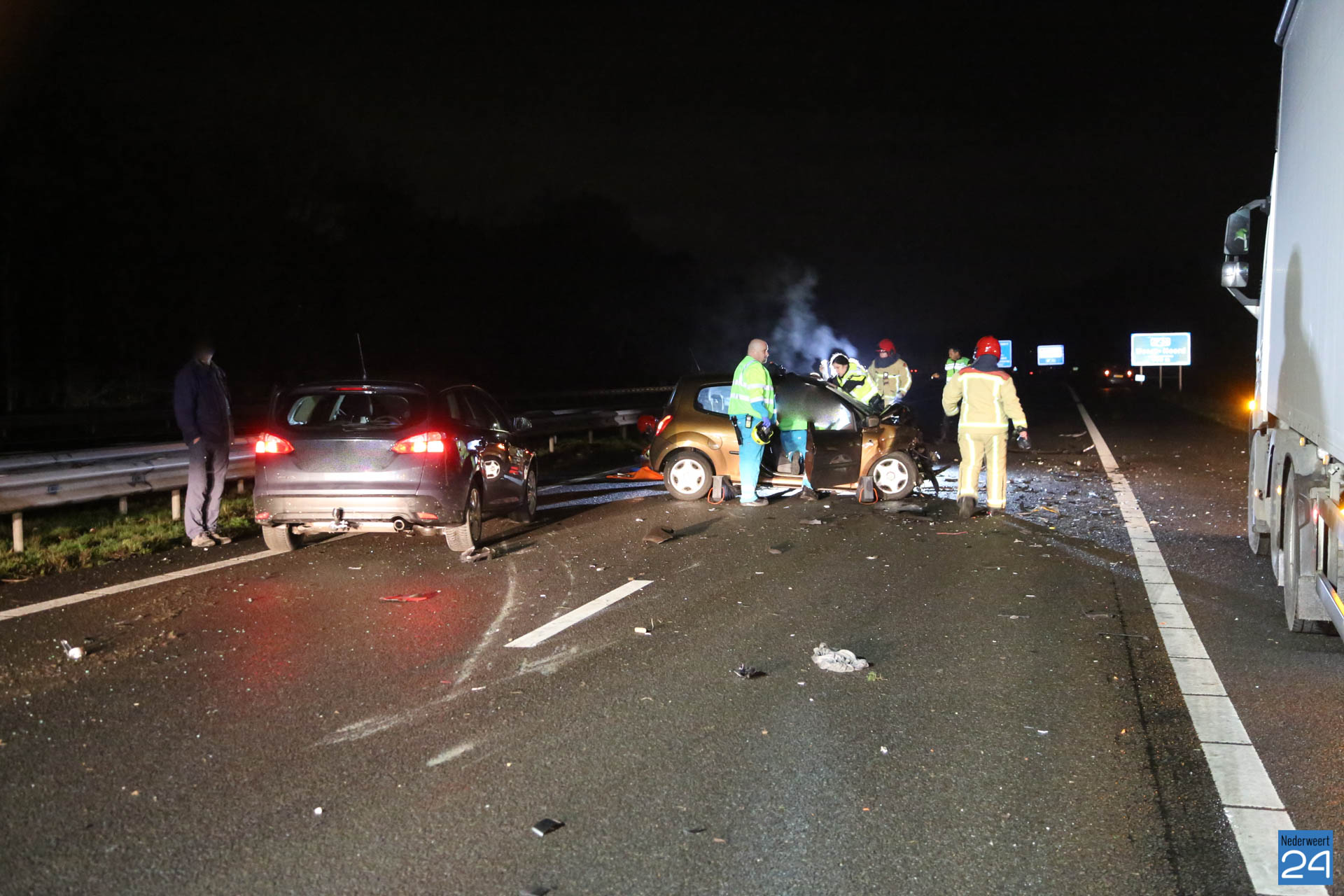 Drie personenauto’s zijn zondagavond hard met elkaar in botsing gekomen op de A2 in Weert. In Zuidelijke richting ging het enkele honderden meters voor afrit Weert-Noord mis. De hulpdiensten kwamen massaal in actie. Onder andere een traumahelikopter landde op de snelweg.
