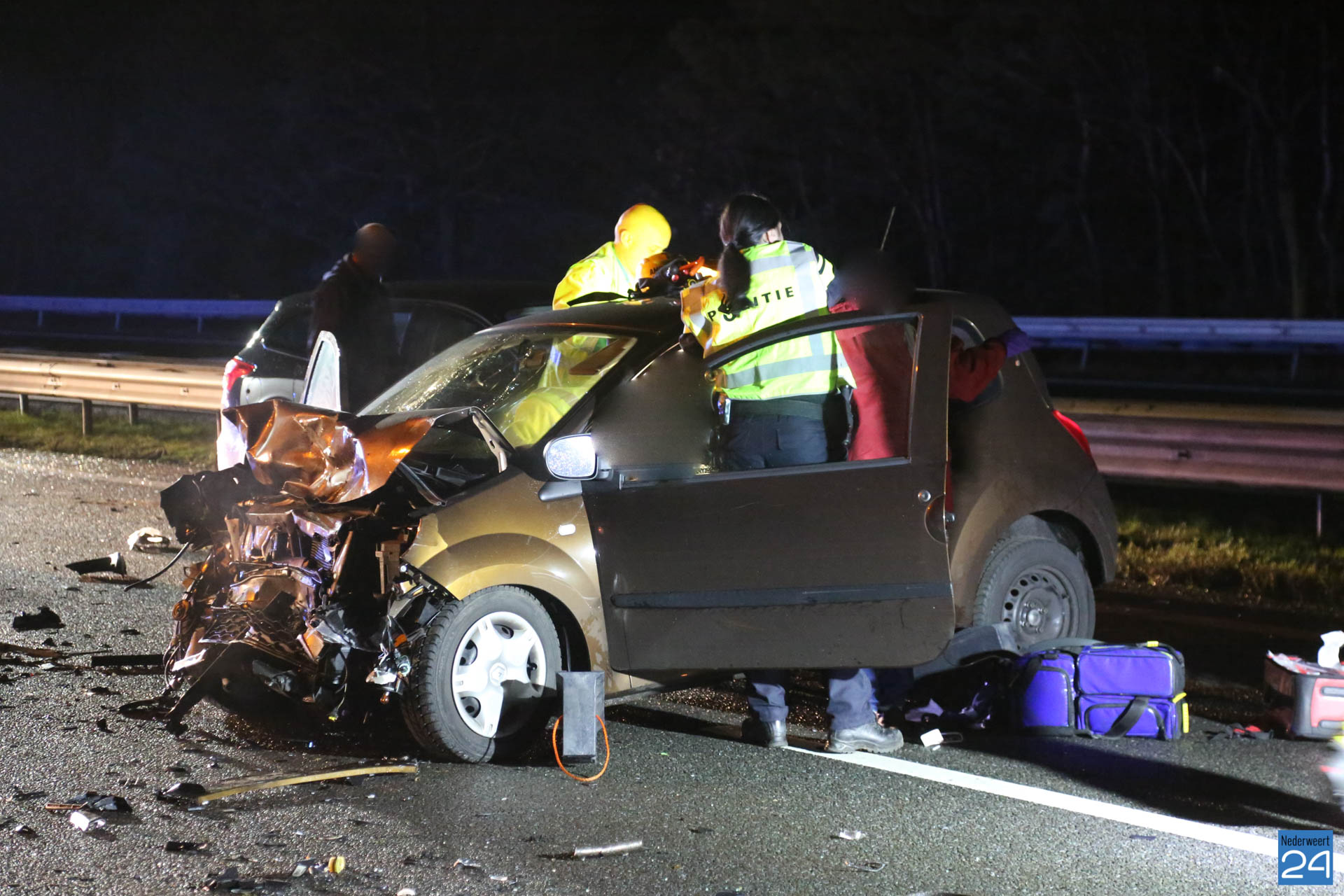 De brandweer heeft één persoon uit een voertuig bevrijd. De vrouw is met spoed per ambulance overgebracht naar het ziekenhuis. De brandweer moest onder andere een deur verwijderen om het slachtoffer uit haar benarde positie te bevrijden.