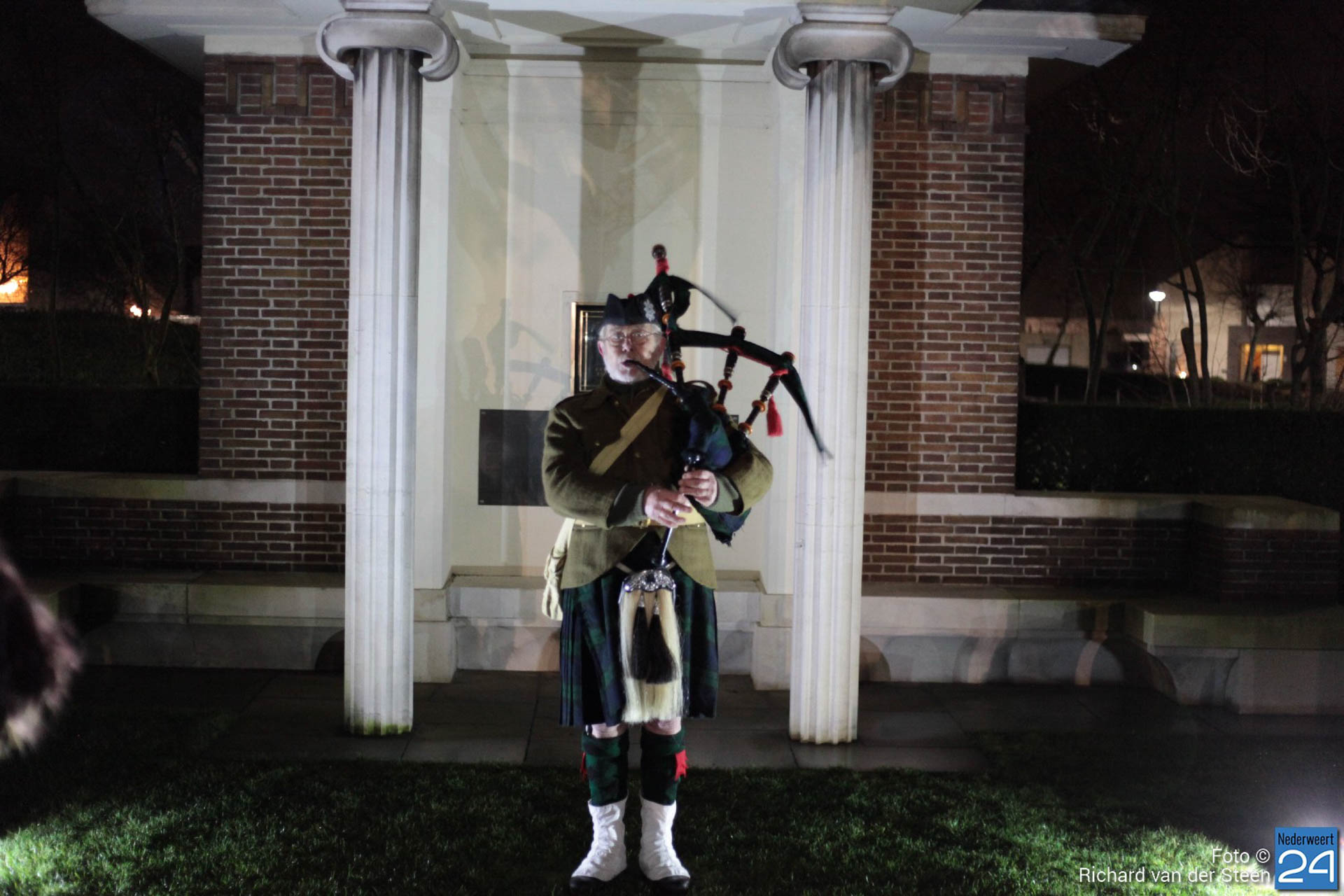 Een back Piper gaf op gepaste wijze muzikaal ondersteunen. In Pipers Society Castle d’Aldenghoor leeft de herinnering voort aan het The Royal Regiment of Scotland The Black Watch. Onderdeel van de 51 Higland division die in onze contreien de bevrijding in 1944 zwaar hebben bevochten. Op het Nederweert War Cemetary hebben 14 The Black Watch hun laatste rustplaats gevonden, waaronder Sydney Hyams 18 jaar jong uit Manchester.
