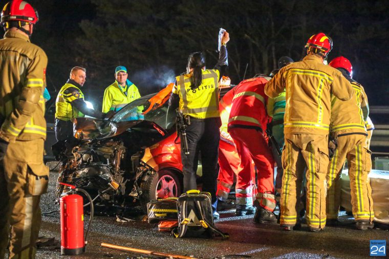 Drie personenauto’s kwamen rond middernacht door een nog altijd onbekende oorzaak met elkaar in botsing. Een vrouw, welke bekneld kwam te zitten in haar auto, werd door de hulpdiensten bevrijdt en is vervolgens overgebracht naar het ziekenhuis. Daar verblijft ze momenteel nog steeds. Twee inzittenden van het derde betrokken voertuig kwamen met de schrik vrij. Door hulpverlening en het onderzoek ter plekke, werd de A2 enkele uren afgesloten.