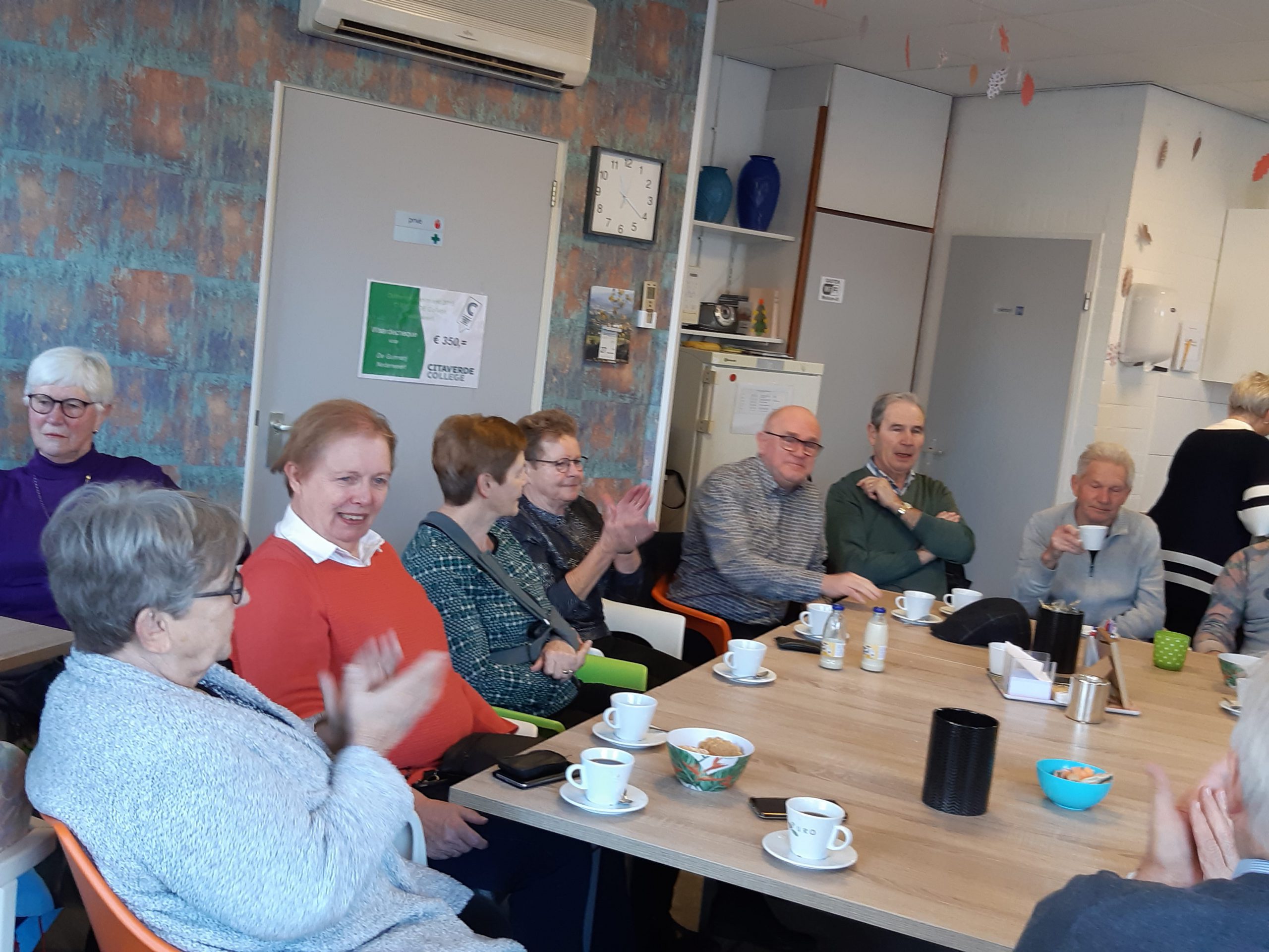 Elke vrijdag vertrekt er een flinke groep wandelaars om 10:00 uur vanaf de Gunnerij in Nederweert voor een wandeling door Nederweert. Elke week wordt er een andere route uitgezet door Michel en Hans. Deze heren werden vrijdag verrast met een lekkere fles wijn door de wandelaars.