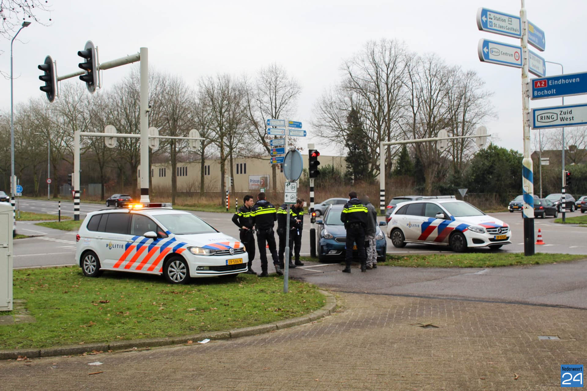 Donderdagmiddag is een personenauto tegen een zogenaamde ‘oversteekknop‘ gebotst. De auto reed tegen het paaltje aan op de kruising Ringbaan-Zuid | Maaseikerweg in Weert.