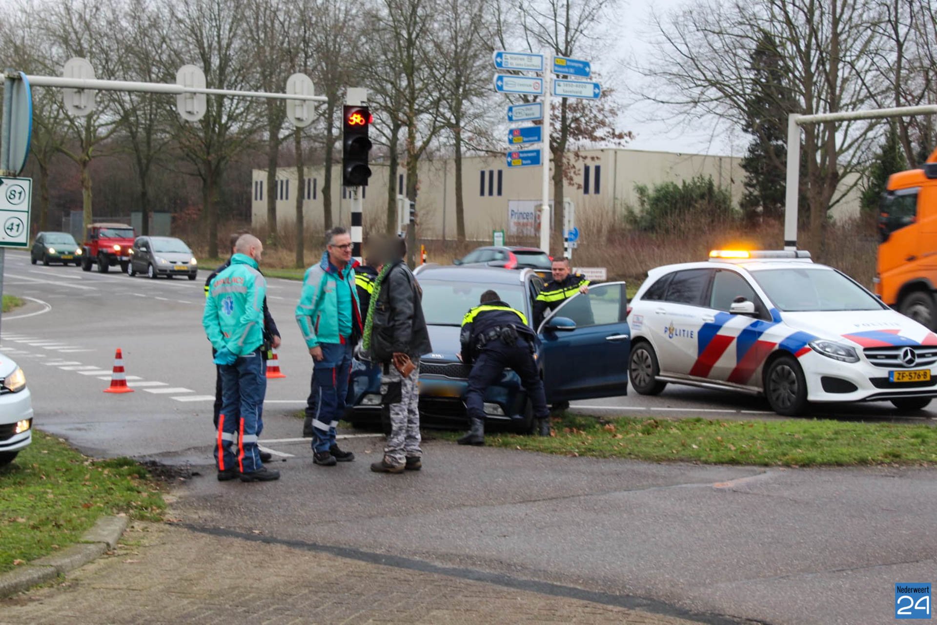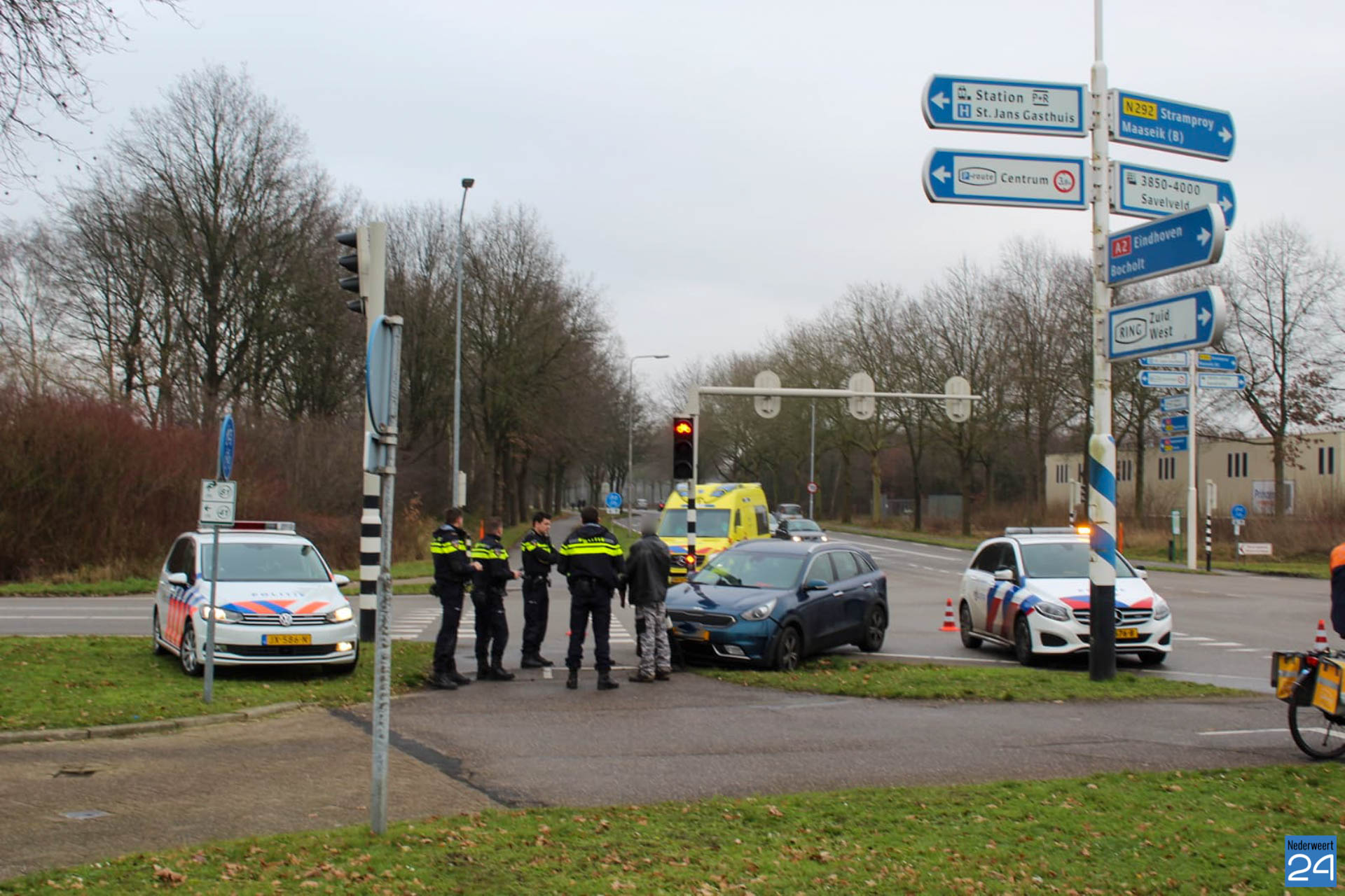 De bestuurder reed door onbekende oorzaak tegen het paaltje van het fietsers verkeerslicht. De politie was snel ter plaatse. Het ambulancepersoneel heeft de man nagekeken op zijn verwondingen. Hij wordt uit voorzorg meegenomen naar het ziekenhuis.