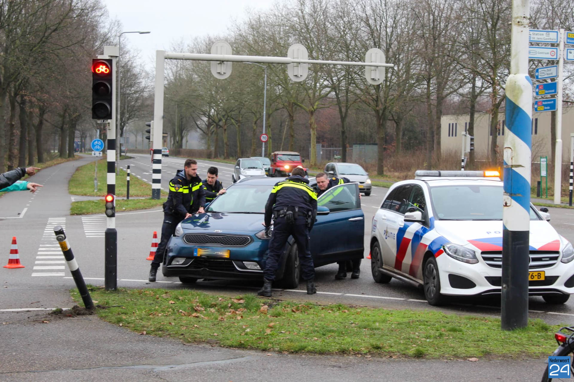 De politie heeft de auto aan de kant gezet zodat het verkeer weinig hinder had van het ongeval.