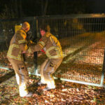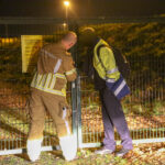 Een niet alledaagse melding voor de Weerter brandweer, maar de vrijwilligers kwamen in actie. Er hing een kettingslot aan de toegangspoort welke doorgang gaf tot het spoor, maar van dit slot had de machinist geen sleutel. Met een betonschaar werd gepoogd om het slot open te breken, maar dat bleek niet makkelijk.