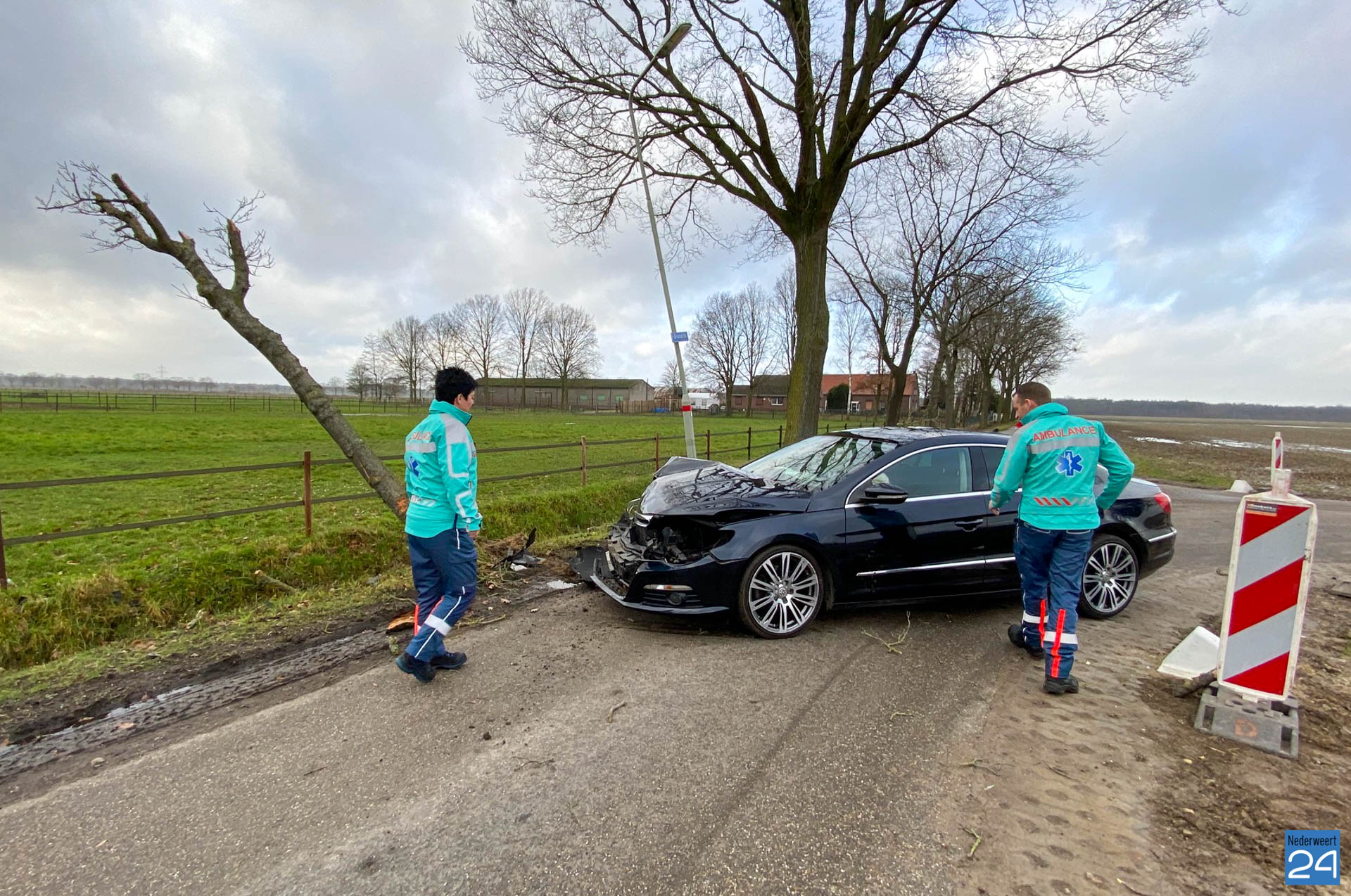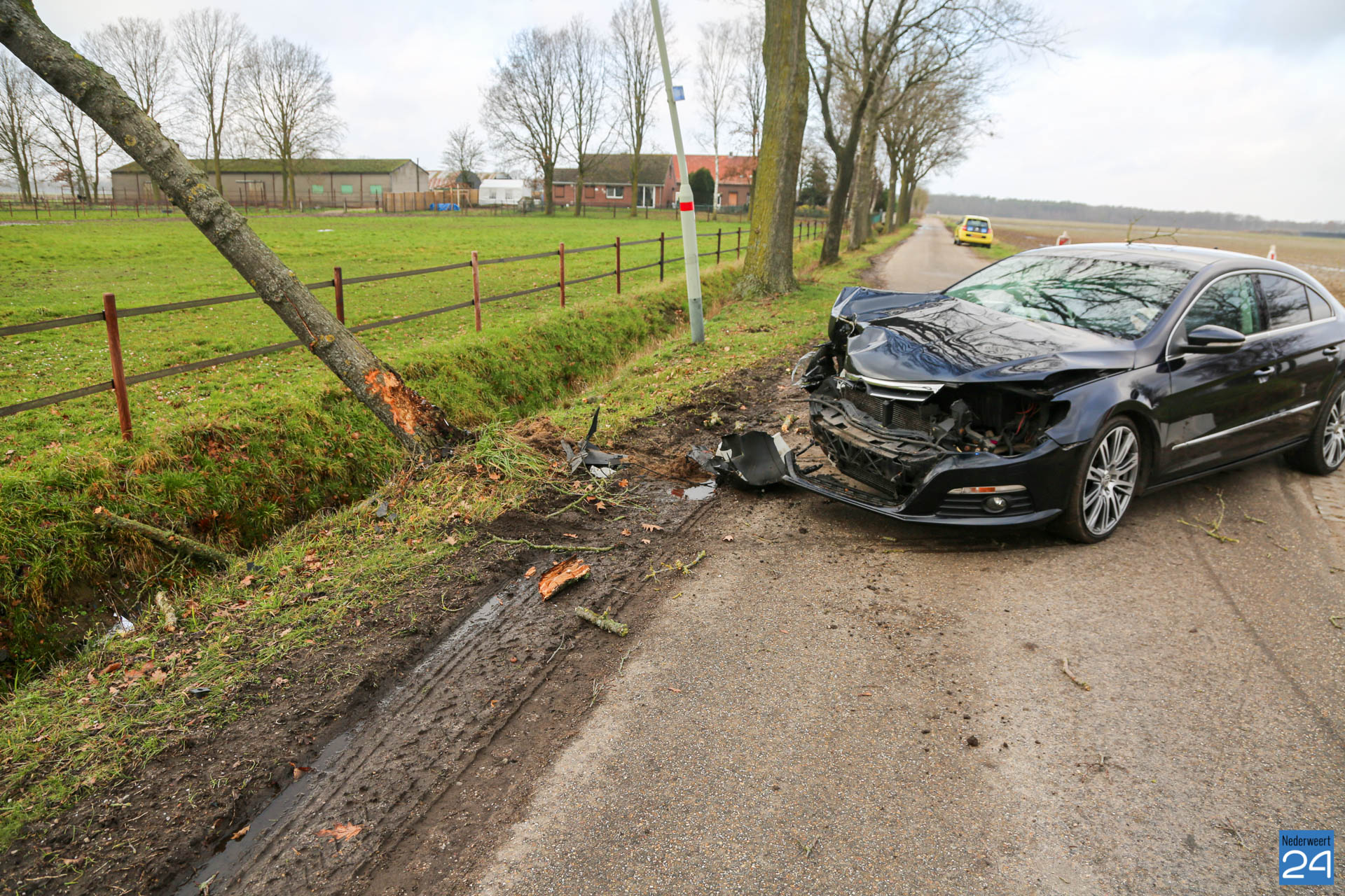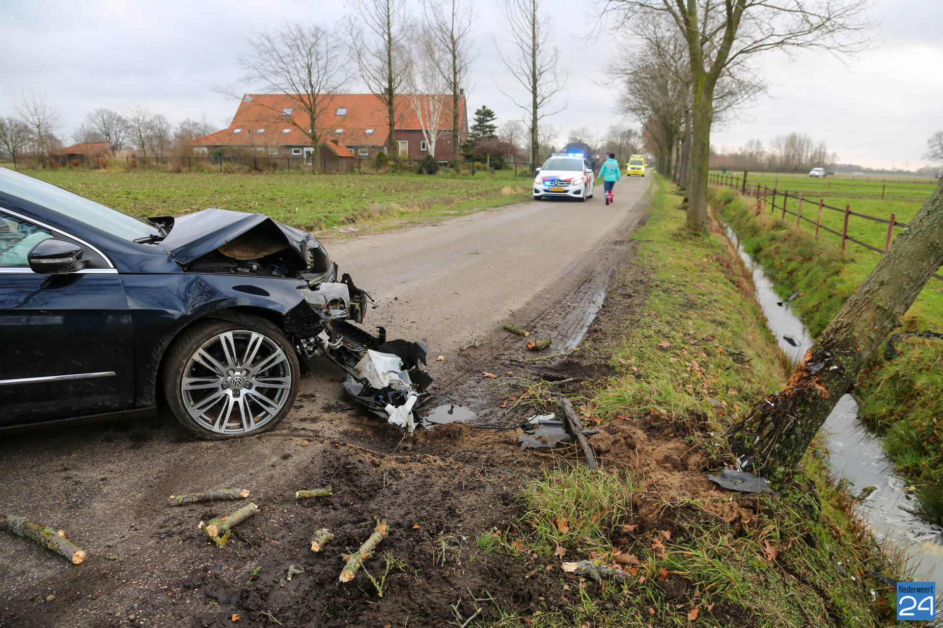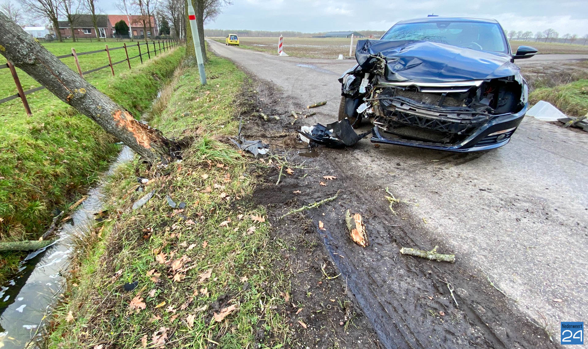 Ook de boom raakte flink beschadigd. Deze kwam scheef te staan en takken lagen in het nabijgelegen weiland. Er wordt door de politie onderzocht of de bestuurder onder invloed was.