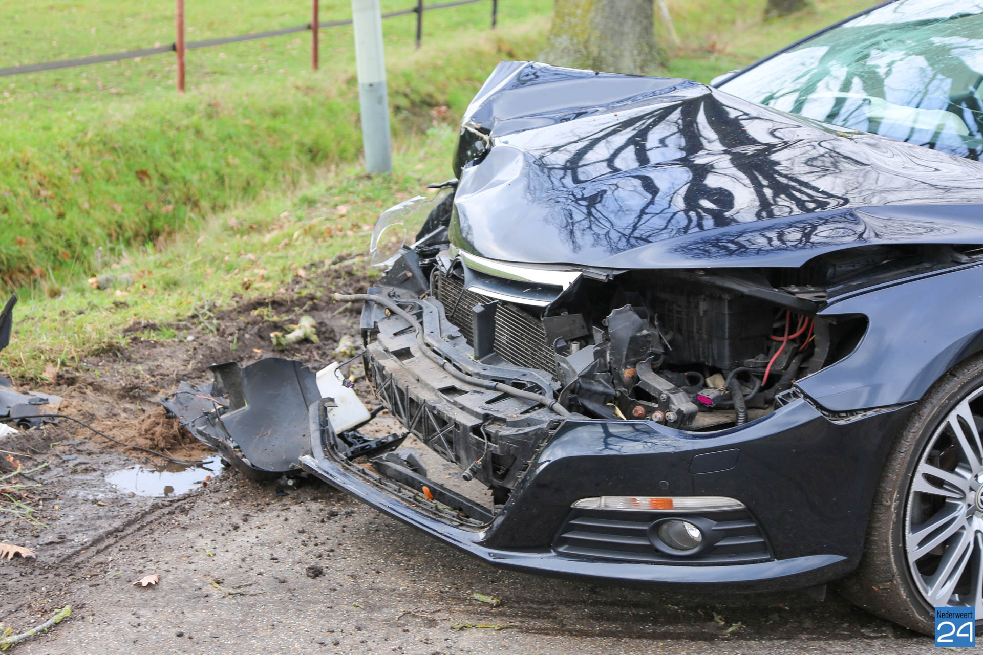 Dinsdagmiddag is een personenauto hard tegen een boom gebotst. Dat gebeurde op de splitsing Molswingelsdwarsdijk met de Grasdijk in Nederweert.