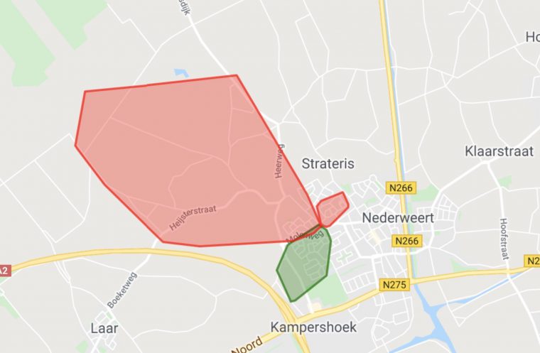 De storing treft een groot gedeelte van Nederweert-West en het buitengebied rondom de Molenweg, Heijsterstraat Heerweg.