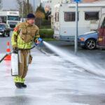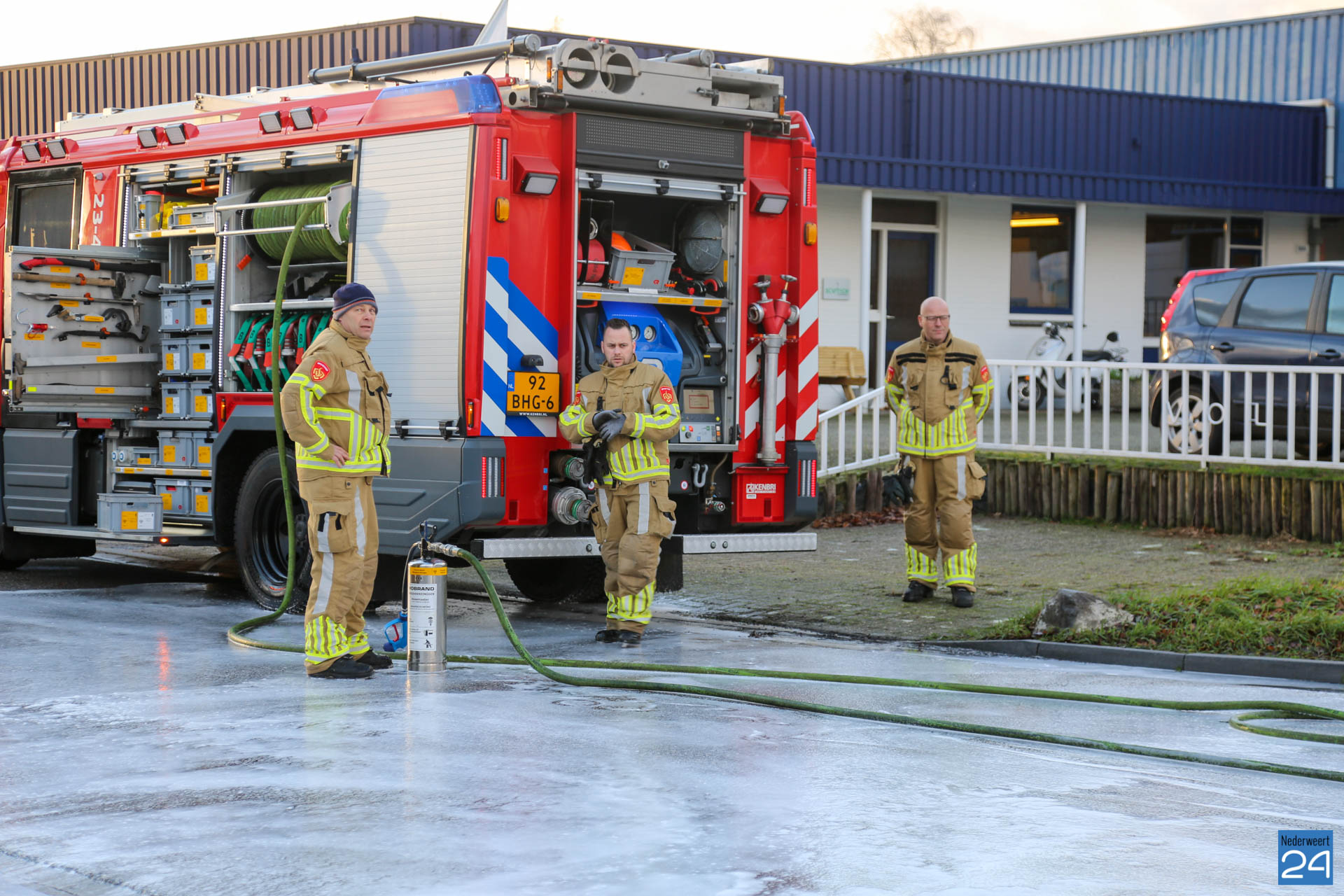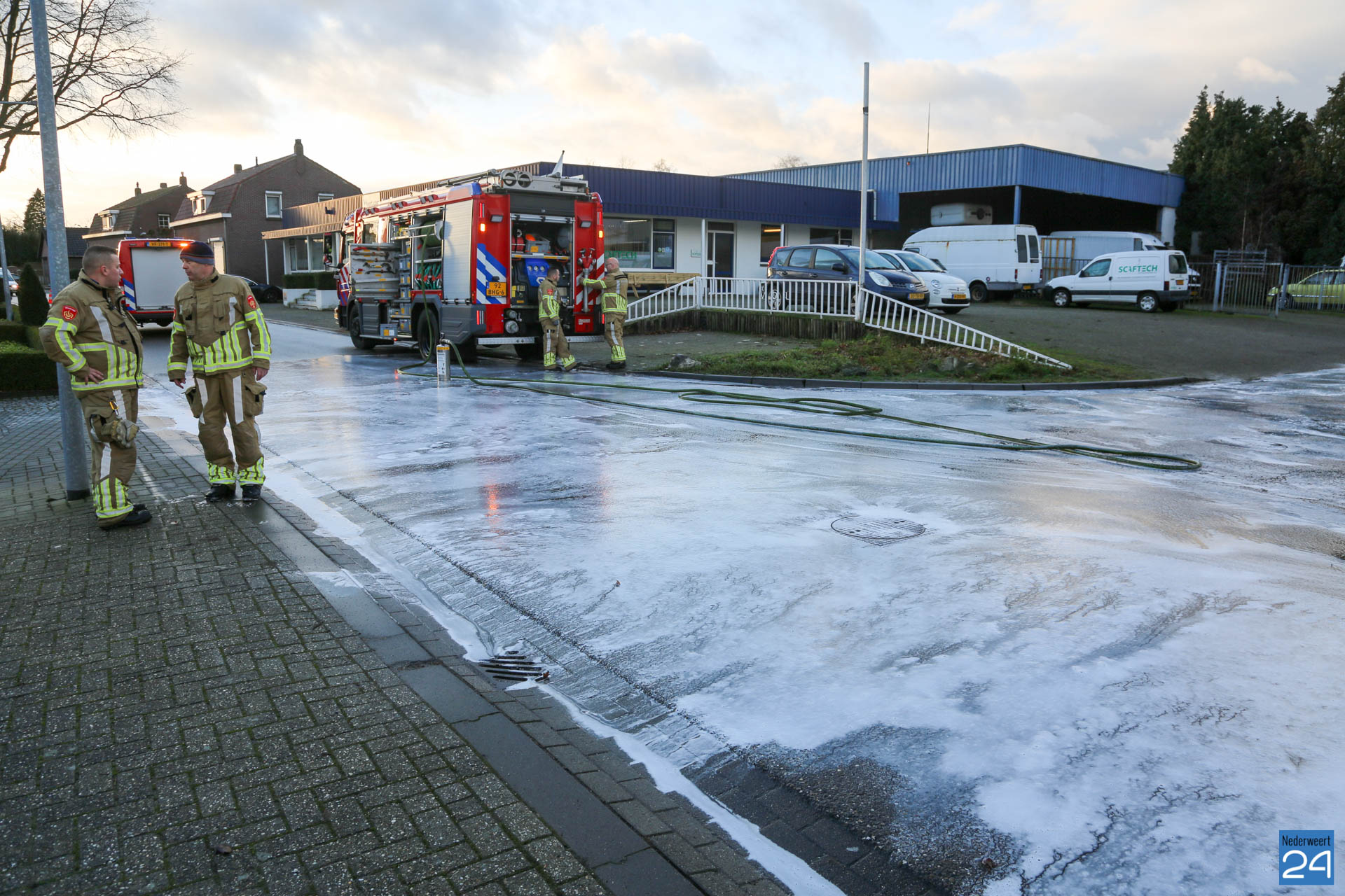 De brandweer werd door een ondernemer opgeroepen. Er hing sinds donderdag al een flinke diesellucht. Toen vrijdagmiddag het spoor zichtbaar werd, kwam de brandweer in actie.