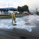 De Leukerstraat – Seelenstraat in Weert is vrijdagmiddag tijdelijk afgesloten geweest vanwege een flink diesel/oliespoor op het wegdek.