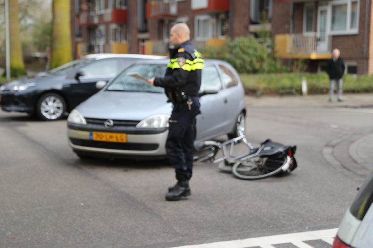 De fietsster kwam, waarschijnlijk door een voorrangsfout, in botsing met een personenauto. Hierbij raakte de fietsster gewond. De fiets kwam onder de voorband van de auto terecht.