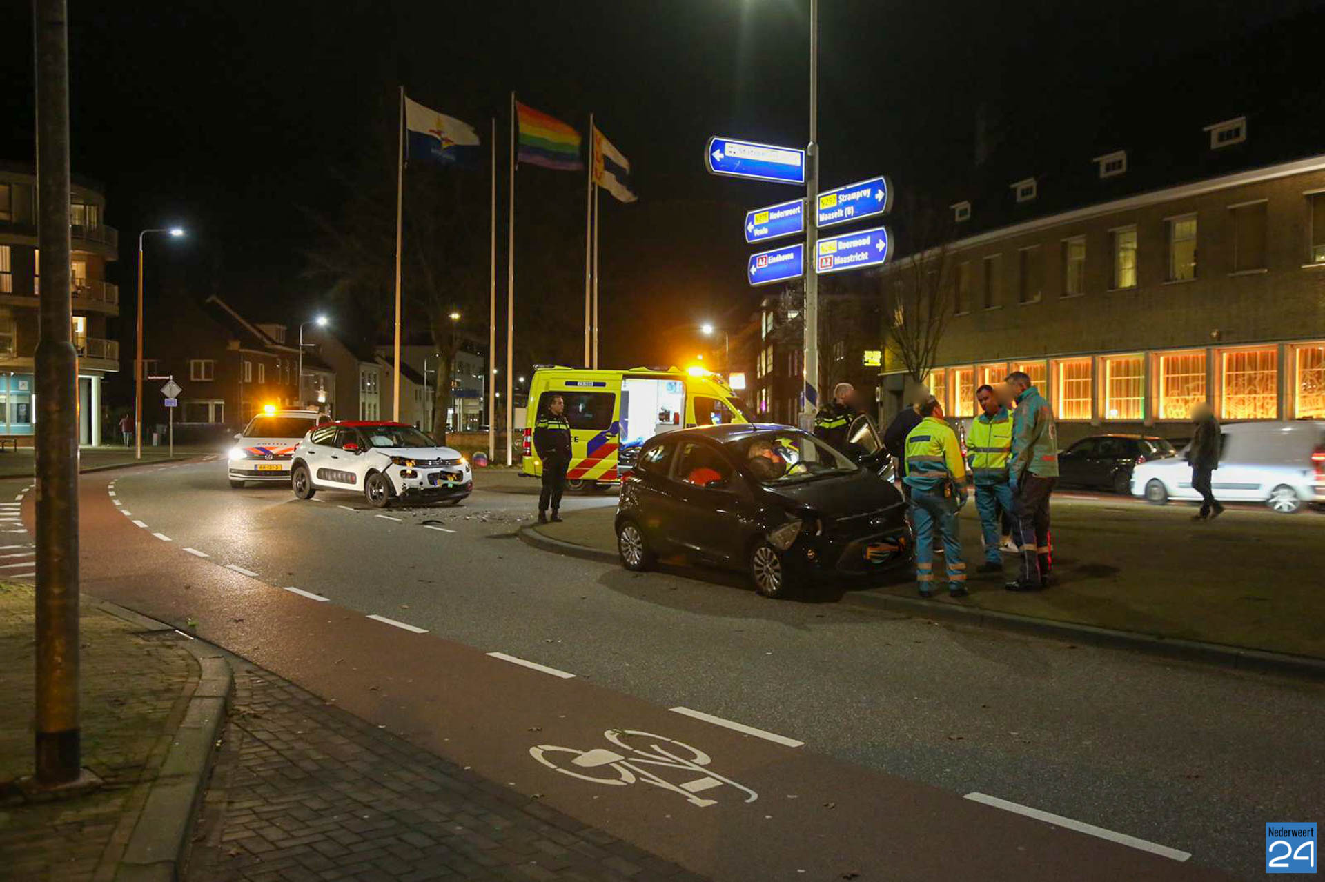 De twee personenauto’s zijn door nog onbekende oorzaak met elkaar in botsing gekomen op de kruising Driesveldlaan met de Wilhelminasingel in Weert. Beide bestuurders, een man en een vrouw, zijn nagekeken door het ambulancepersoneel. Ze hoefde niet voor verdere behandeling naar het ziekenhuis.
