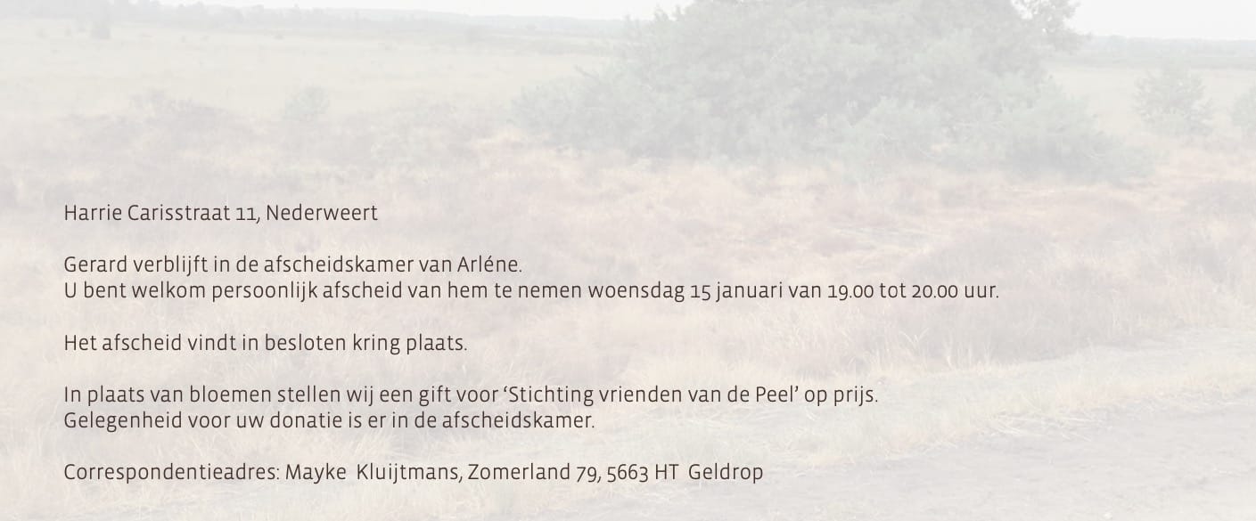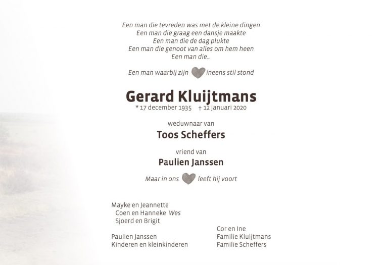 We zullen Gerard in onze herinnering bewaren als een vriendelijke lieve man, een man waarvan we veel hebben mogen leren.