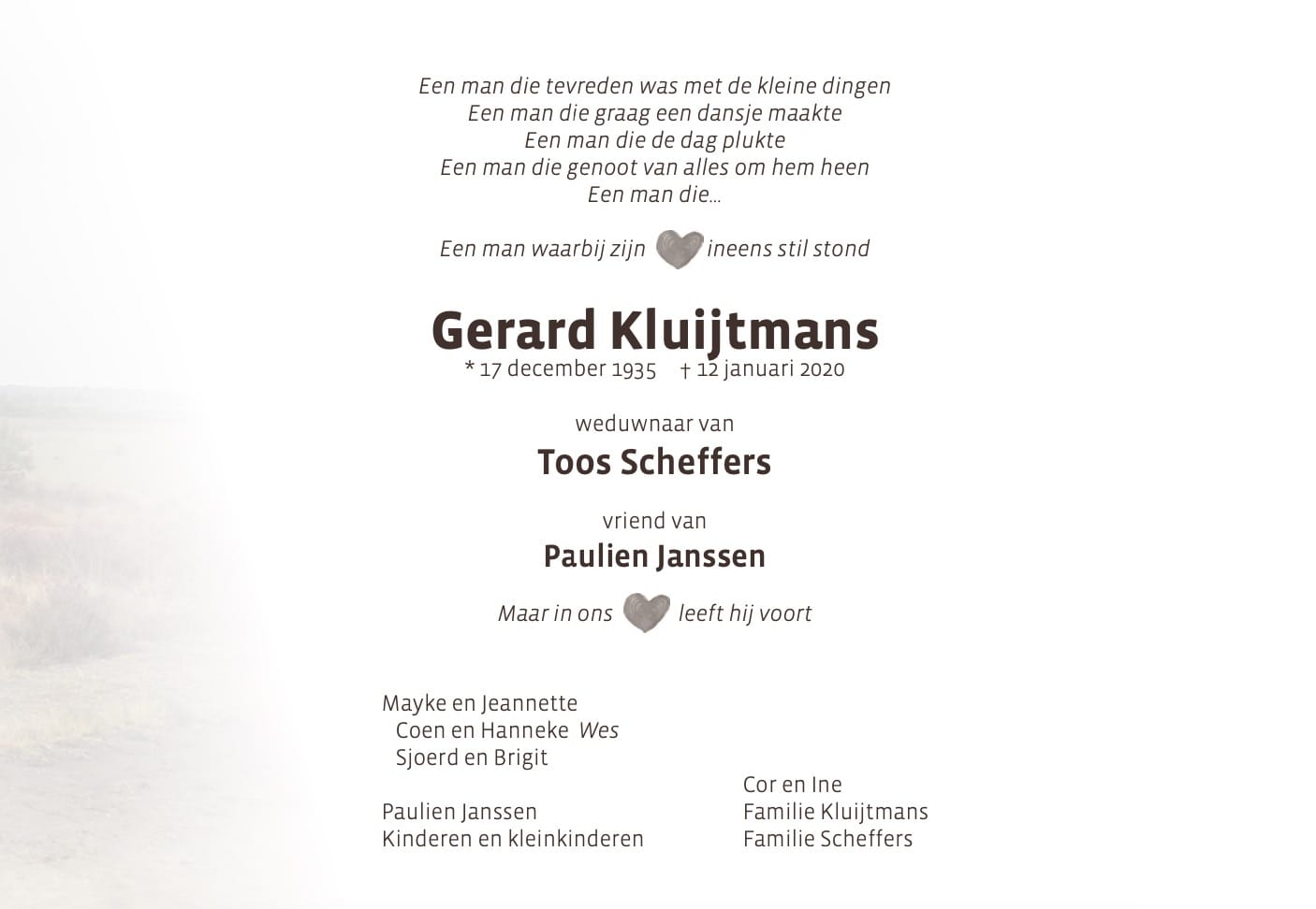 1. Met grote verslagenheid hebben we kennis genomen van het plotselinge overlijden van Dhr. Gerard Kluijtmans.
