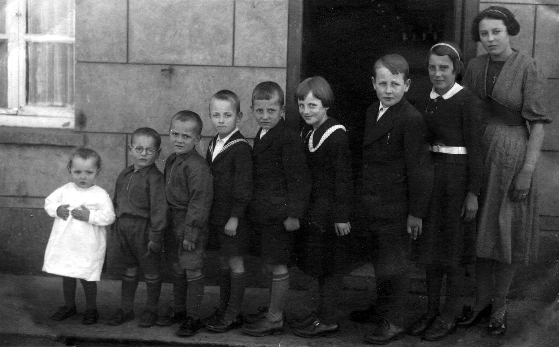 Schoeen foto van de kinderen Breukers oet Leivere……van links nao rechts Martha, Sjra, Thei, Chris, Pierre, Tinie, Jan, Lucie en Judith…