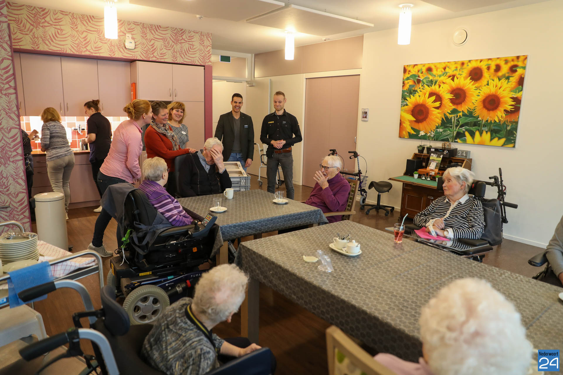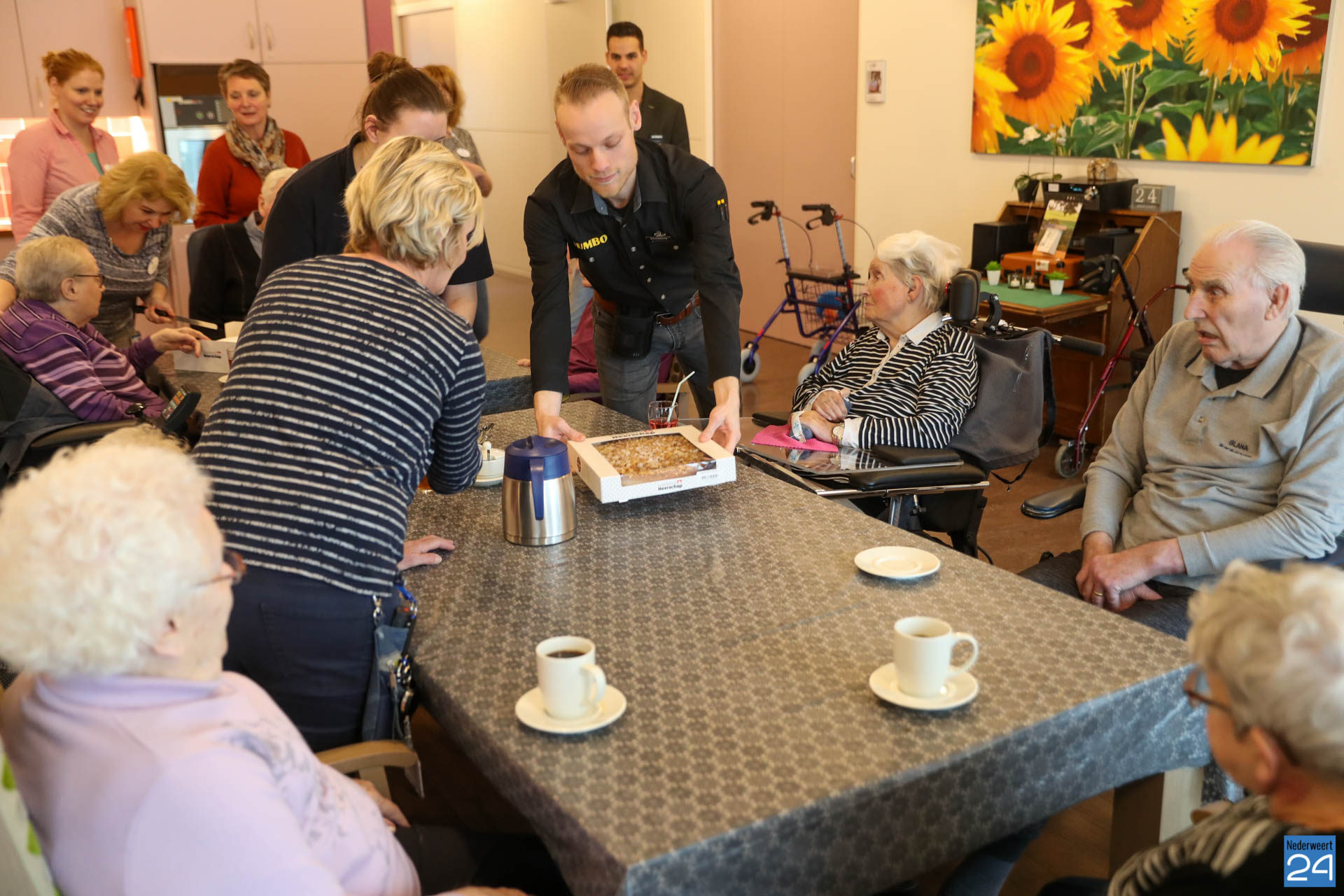 Ducleaux Frijters (bedrijfsleider Jumbo Heerschap Nederweert) deed er een schepje bovenop en verraste vandaag niet één groep, maar alle 100 bewoners van Zorgcentrum St. Joseph met de ambachtelijke vlaaien van Bakkerij Heerschap. Uiteraard genoten ook de medewerkers van een stukje vlaai. Ducleaux: “Er werd mij verteld dat juist dit soort momenten veel betekenen voor de bewoners. Ik vind het dan ook prachtig om te zien dat we met dit kleine gebaar zoveel mensen blij kunnen maken.”