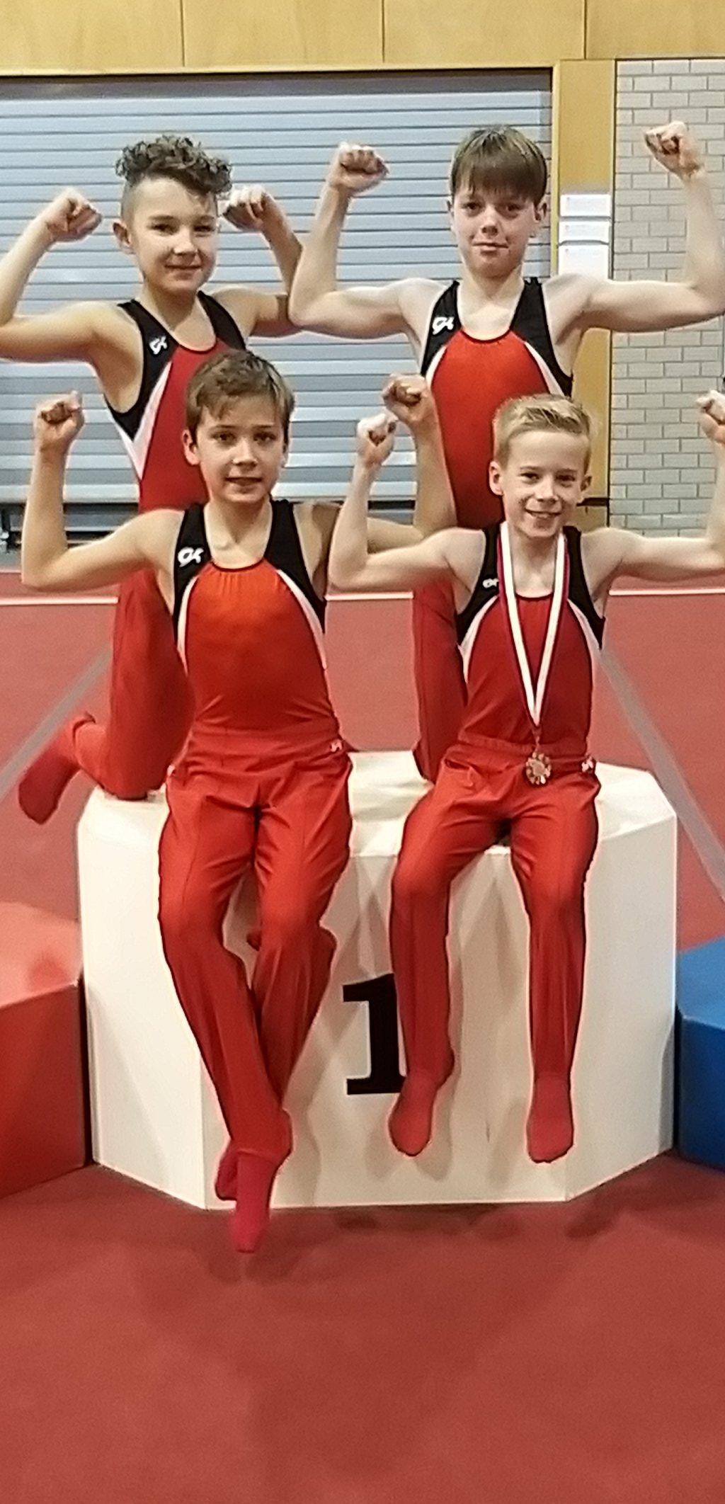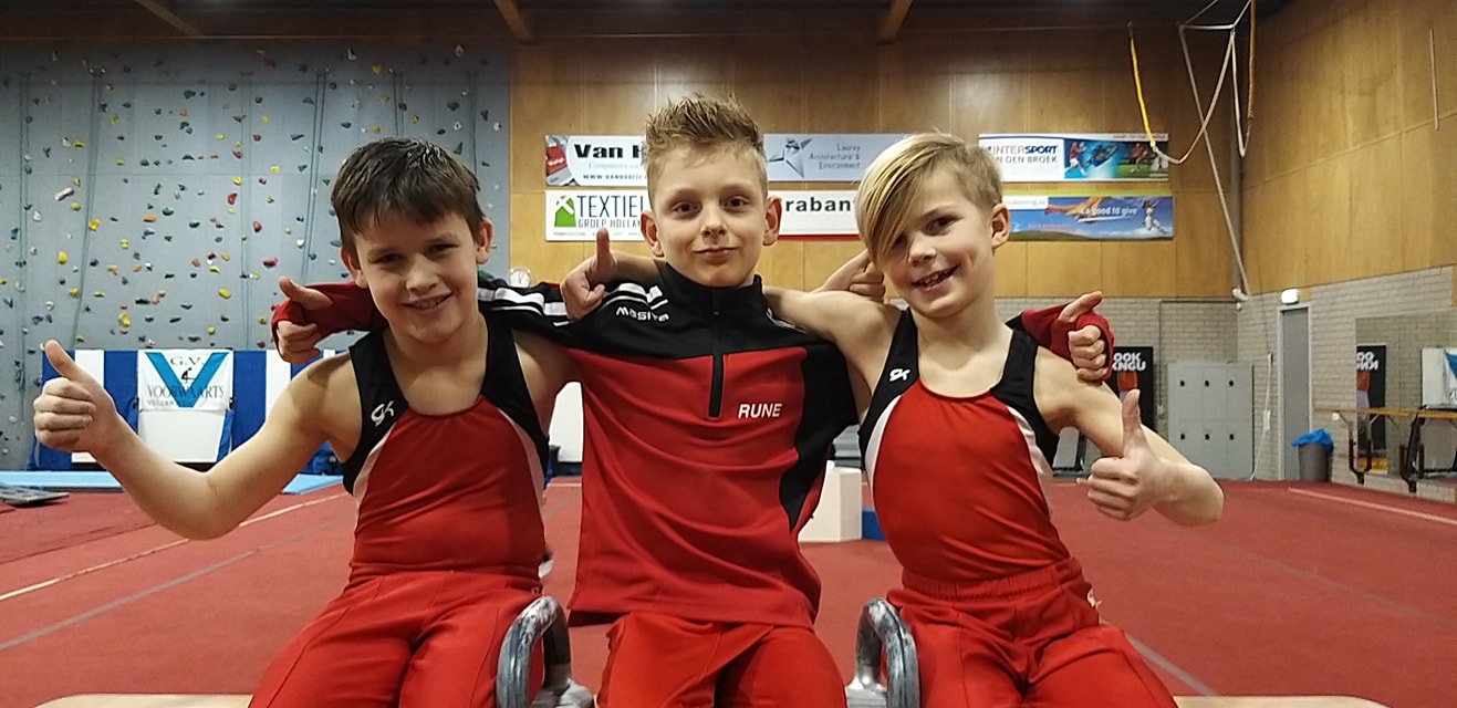 Voor Jip was de hoop helaas al snel over, op het eerste toestel ging het mis. Hij zwaaide zo hard op brug, dat hij doorschoot en keihard op de leggers viel. Hierdoor kon hij helaas zijn oefening niet afmaken. Hier schrokken zijn turnmaatjes natuurlijk van. Brug verliep voor de andere heren gelukkig zonder al te grote fouten. Daarna ging de wedstrijd weer verder. Hierin werd door de heren de ene na de andere mooie oefening geturnd. Mik ging als een speer en behaalde op bijna alle toestellen een top 5-score en werd uiteindelijk 7e. Wes behaalde een mooie 12e plek. Al zijn oefeningen waren mooi gelukt. Jip werd ondanks zijn val toch nog 15e. Wat betekent dat hij al zijn andere oefeningen heel netjes heeft geturnd. Aaron vond het nog allemaal nog erg spannend waardoor hij uiteindelijk naar de 21e plek stuiterde.