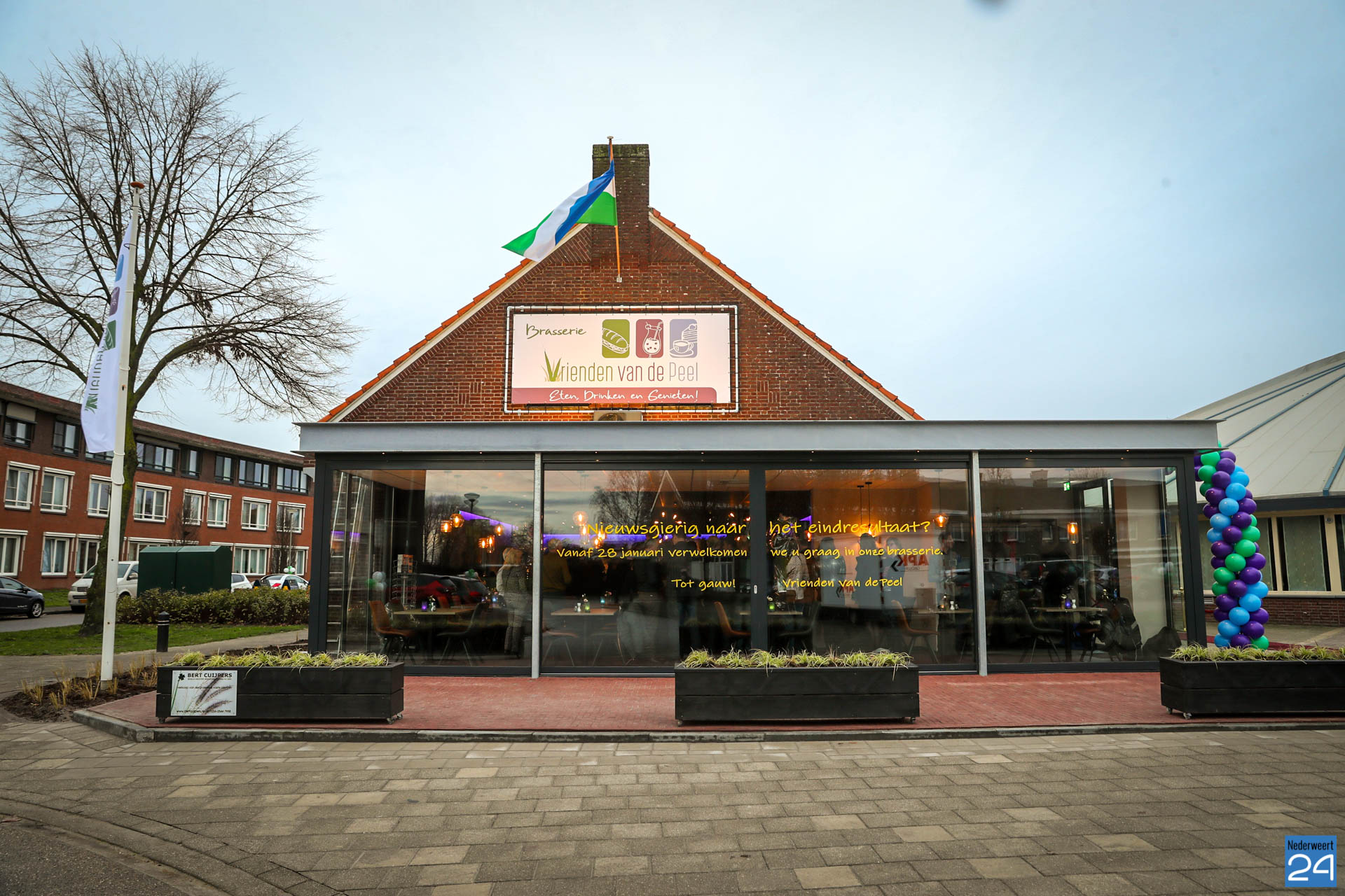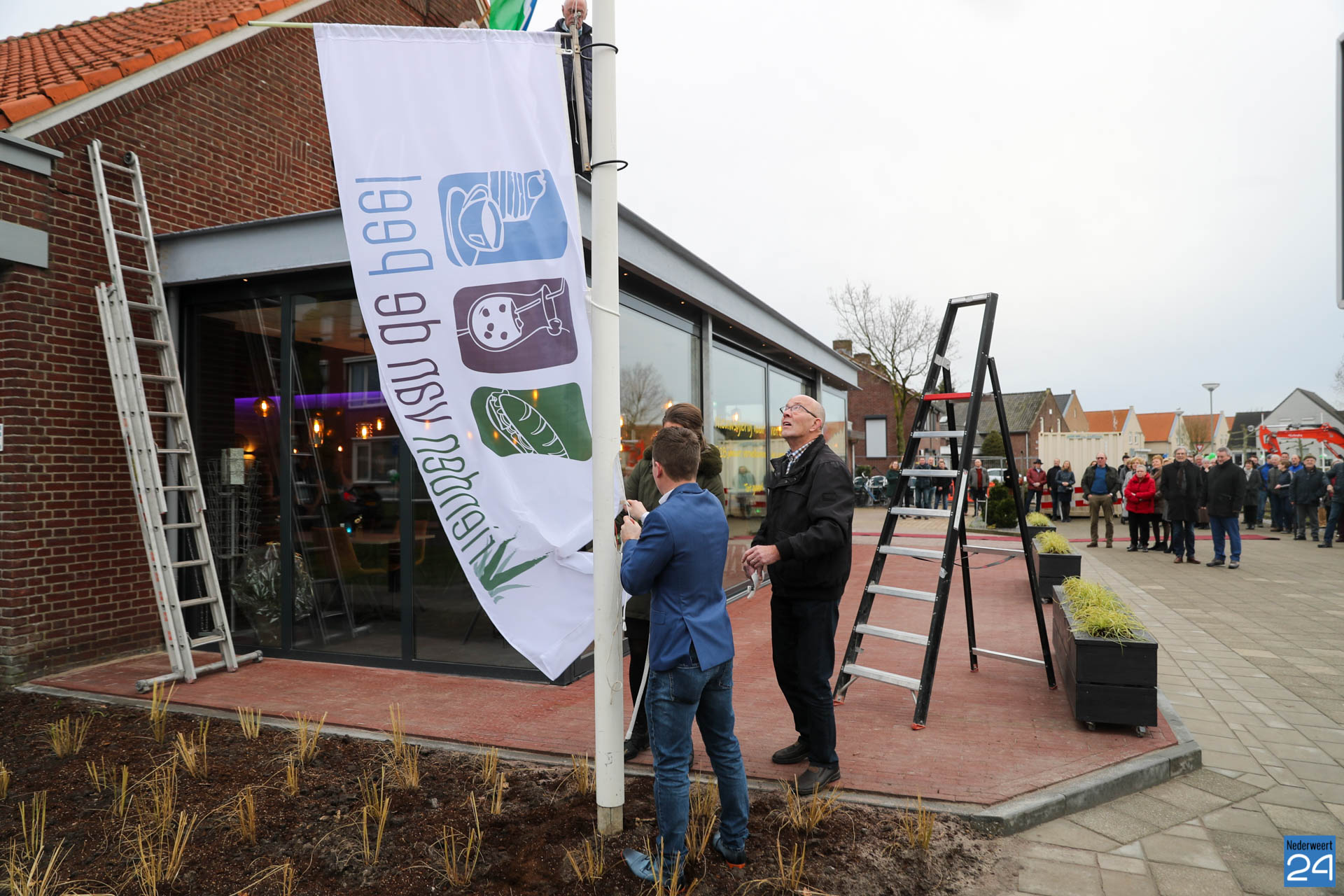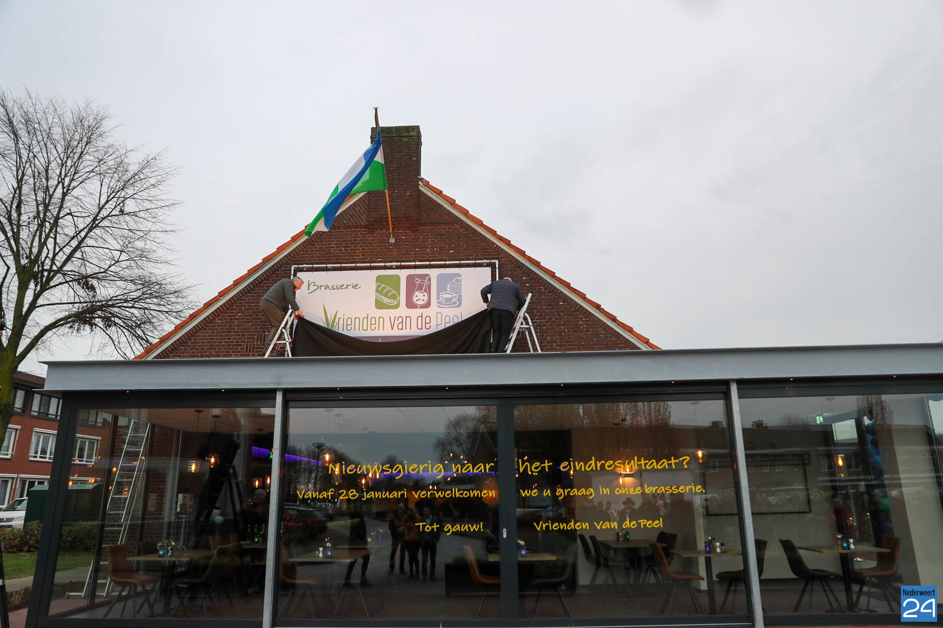 Maandagmiddag werd “Vrienden van de Peel” dan ook officieel geopend. De vlag werd gehesen, het logo boven op de gevel werd onthuld en pastoor Koumans zegende het gebouw in. Wethouder Cuijpers en Voss waren namens de gemeente aanwezig om iedereen te bedanken voor de fantastische inzet van de afgelopen maanden.
