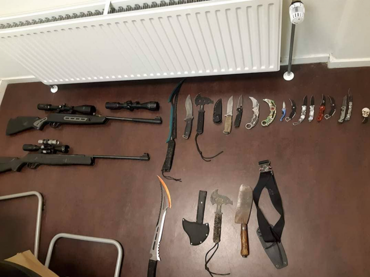 Tijdens de controle trof de politie een flinke hoeveelheid wapens aan. Een wijkagent van de politie Leudal spreekt over een ‘rijdende wapenkamer’. ”Sommige wapens zijn wel legaal om thuis te hebben, maar als je met al deze wapens in een bosperceel controleert wordt, gelden er toch andere regels,” aldus de wijkagent.