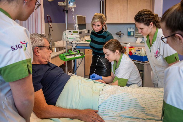 Tijdens elke stage wordt de student begeleid door een ervaren verpleegkundige, een docent van school en een opleidingsfunctionaris van het ziekenhuis. Doordat Gilde Zorgcollege al in het ziekenhuis is gevestigd, kunnen aankomend verpleegkundigen intern worden opgeleid. “Dat betekent veel extra aandacht en aanvullend onderwijs op de werkplek. Je leert het vak van verpleegkundige in de praktijk en ook nog eens in je eigen regioziekenhuis. En als het opleidingstraject naar wederzijdse tevredenheid verloopt, heb je als sollicitant met het diploma op zak natuurlijk een streepje voor zodra er een vacature vrijkomt. Dit alles maakt het SJG-spoor voor studenten tot een unieke kans”, zo besluit Pieter Slegers.