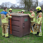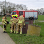 De brandweer heeft het dak er weer terug op gelegd en het dak vastgemaakt met een spanband. De netbeheerder zal dit later definitief repareren.